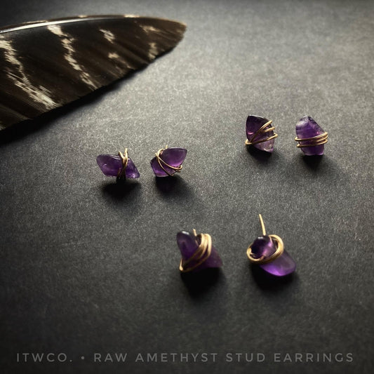Natural Raw Amethyst Stud Earrings ♢ rts