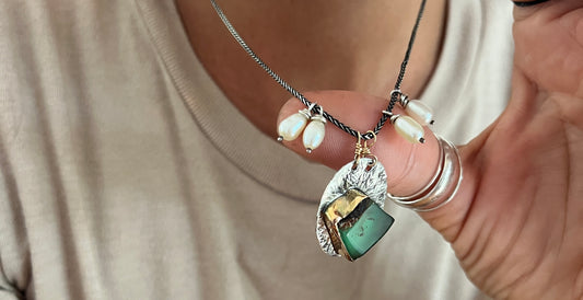 Kaua’i Sunrise Shell X Silver Tahitian Keshi Pearl Pendant