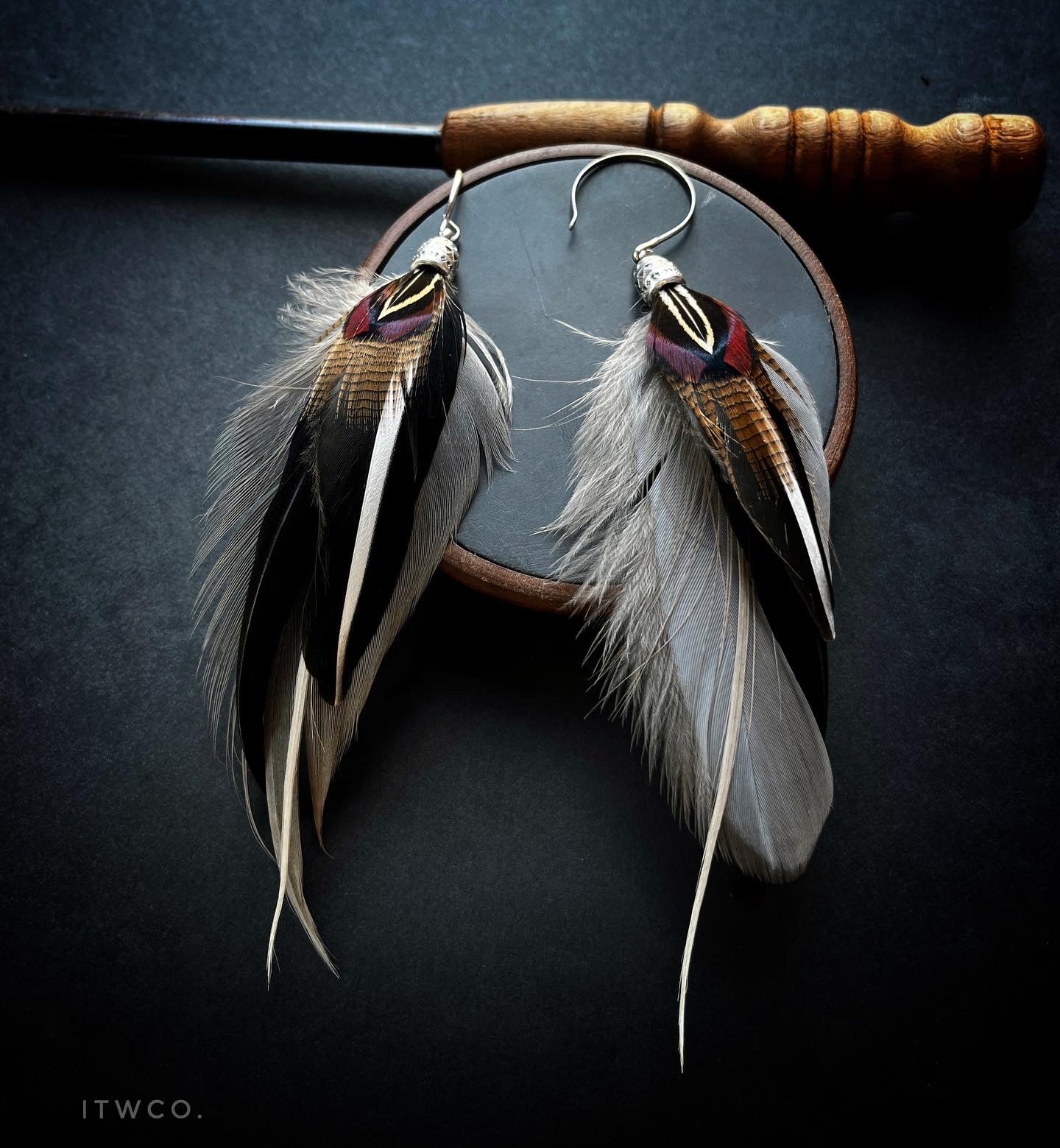 Merganser x goose x pheasant feathers paired with tribal sterling