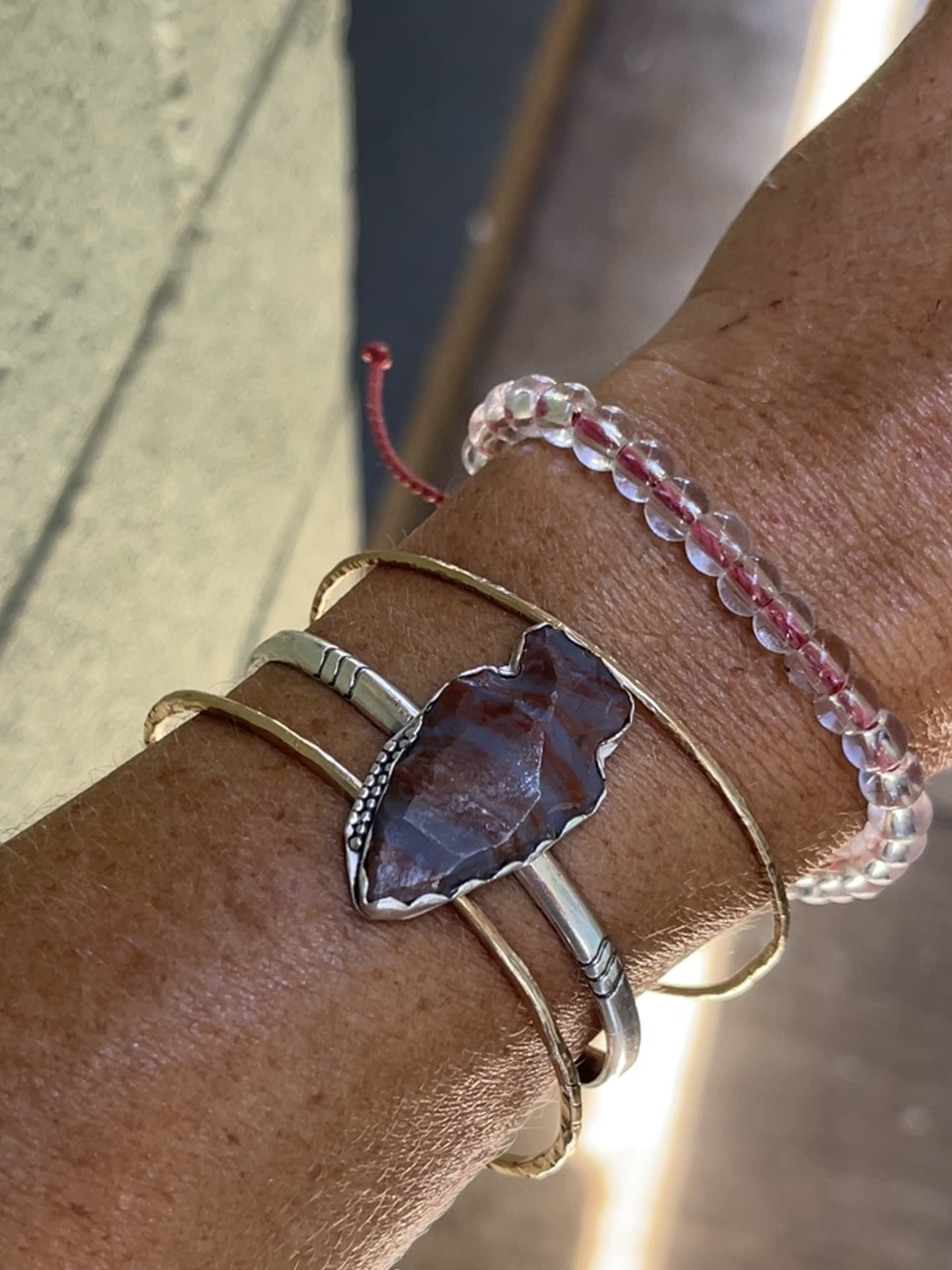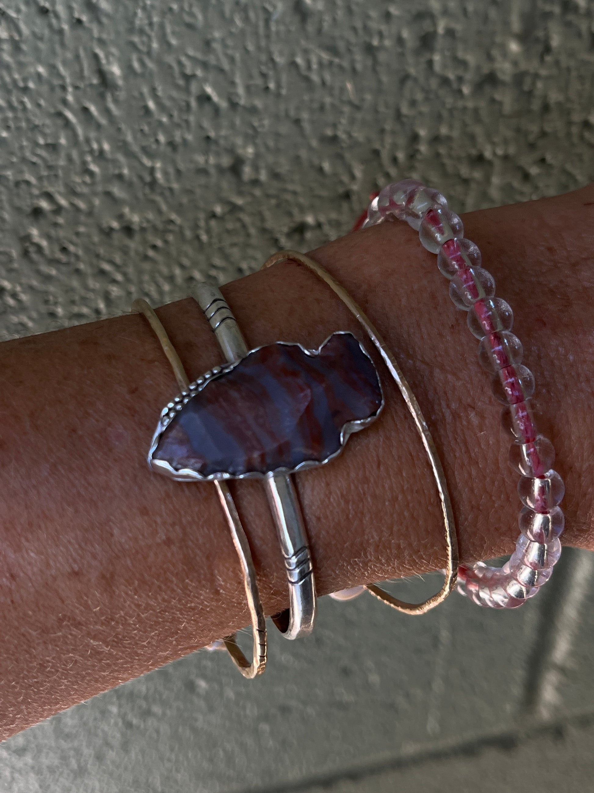 Organically crafted, this thick, hand-forged cuff showcases a stunning jasper arrowhead hand knapped by the Cherokee Indians & set in a sterling silver bezel. The thick sterling cuff band adds durability and elegance to this unique piece. Elevate any outfit with this beautiful arrowhead cuff.
