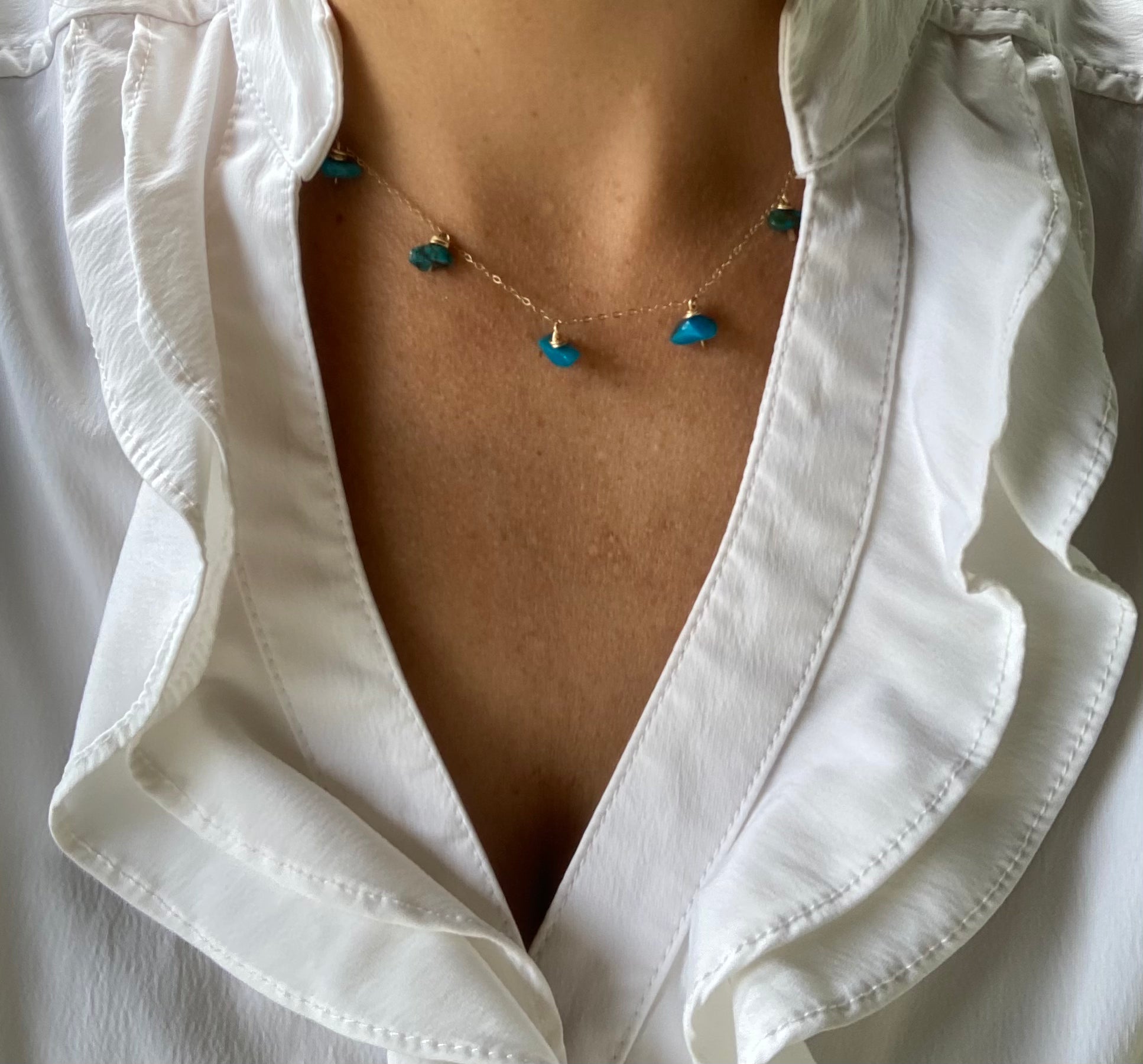 Sleeping Beauty AZ Turquoise woven onto our daintiest 14kt gold filled or sterling chain