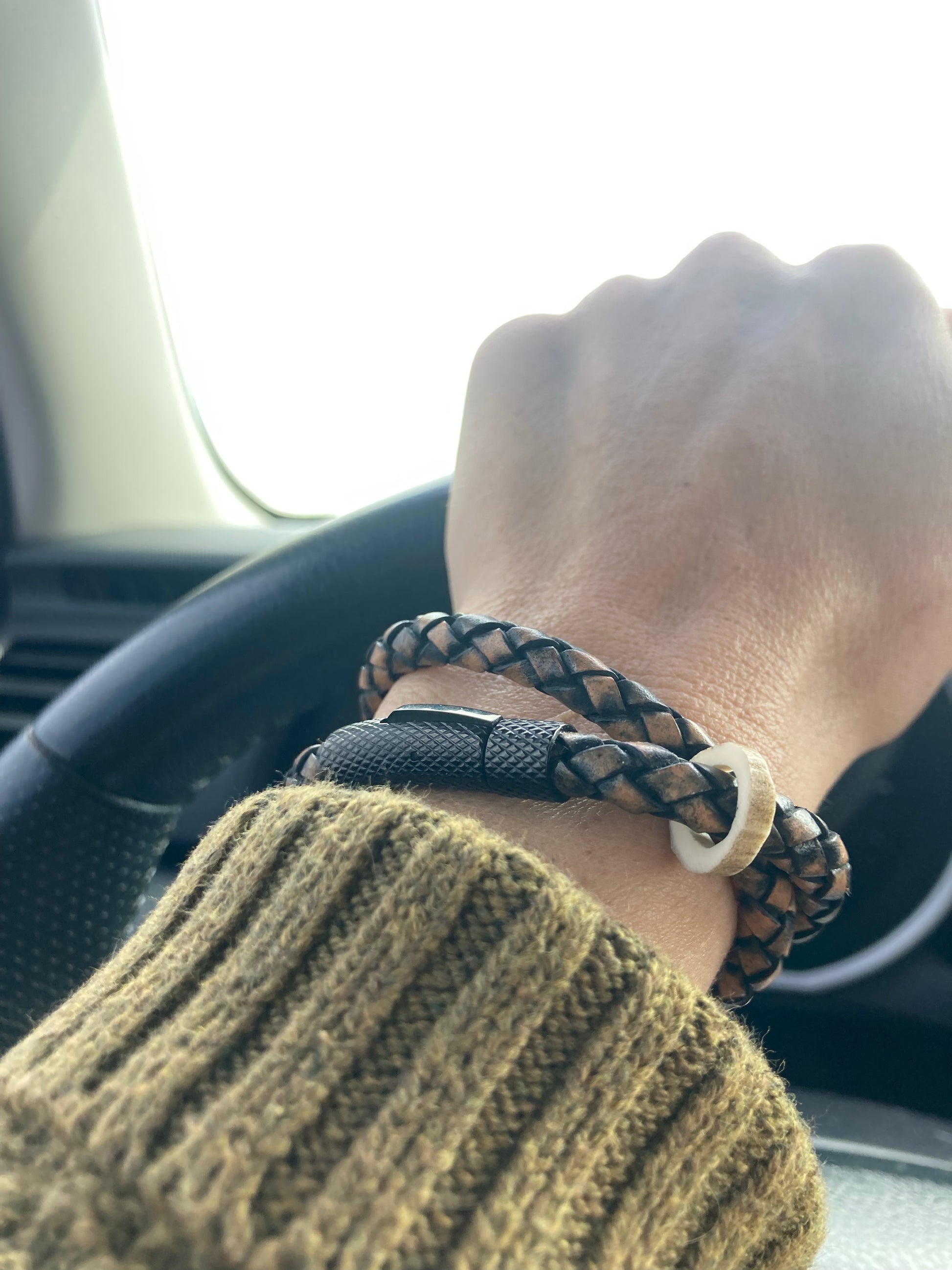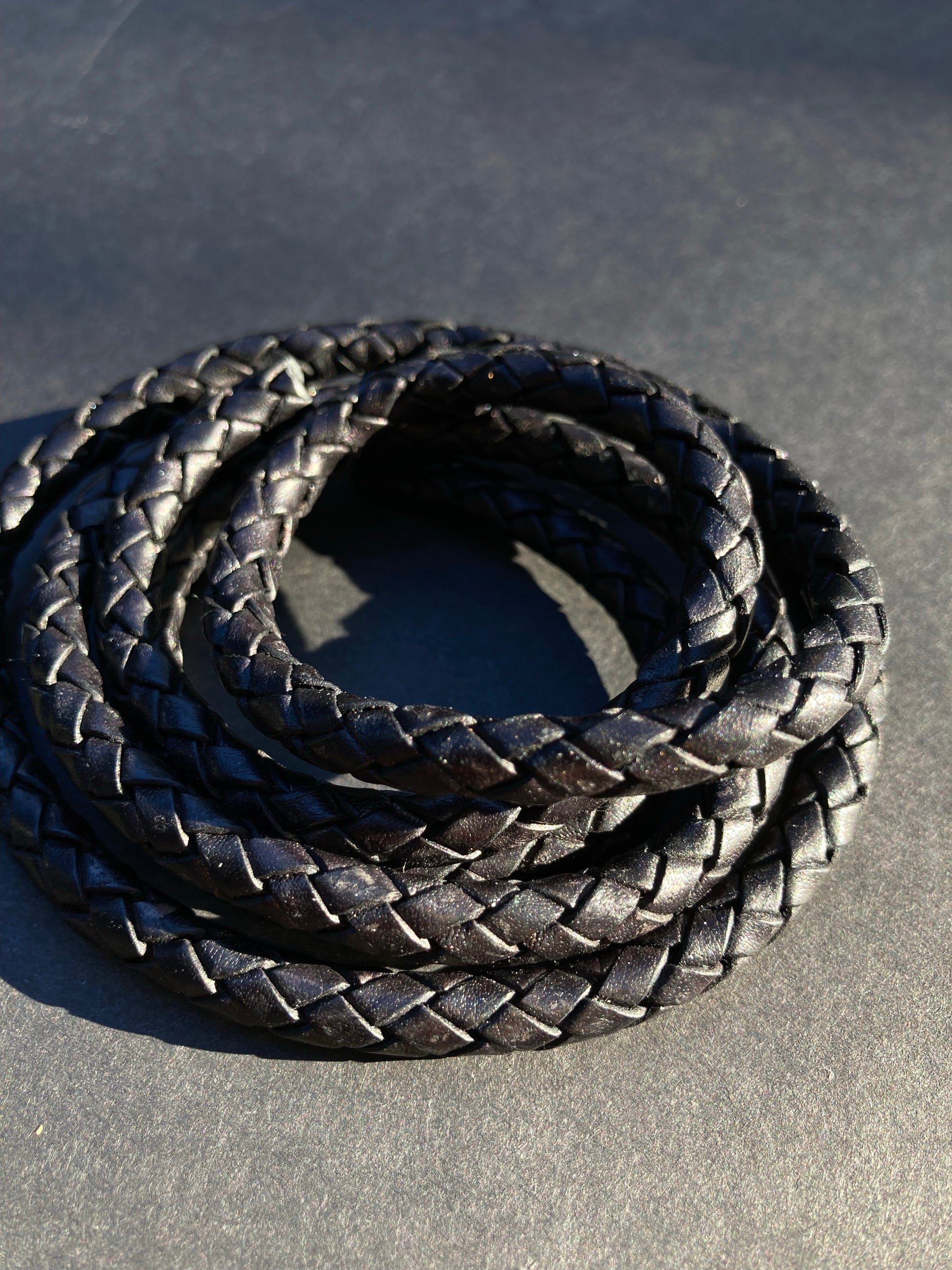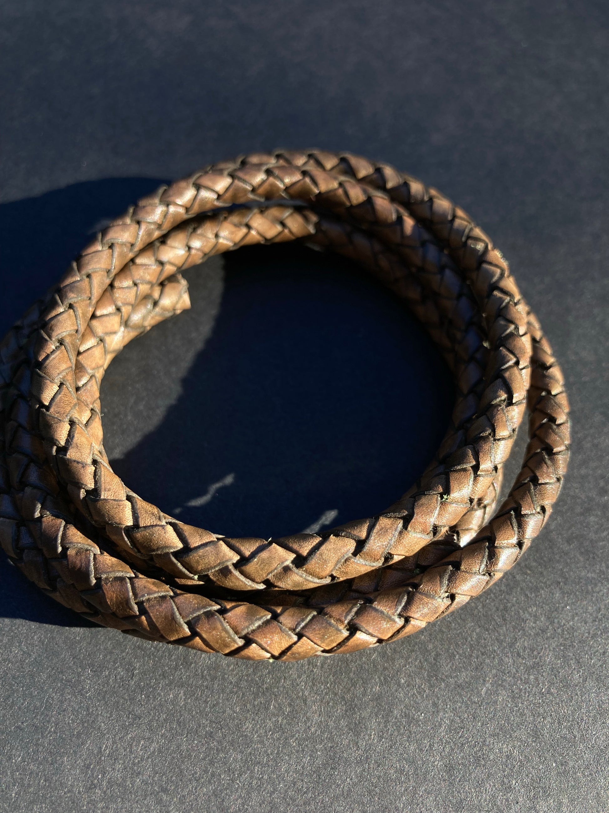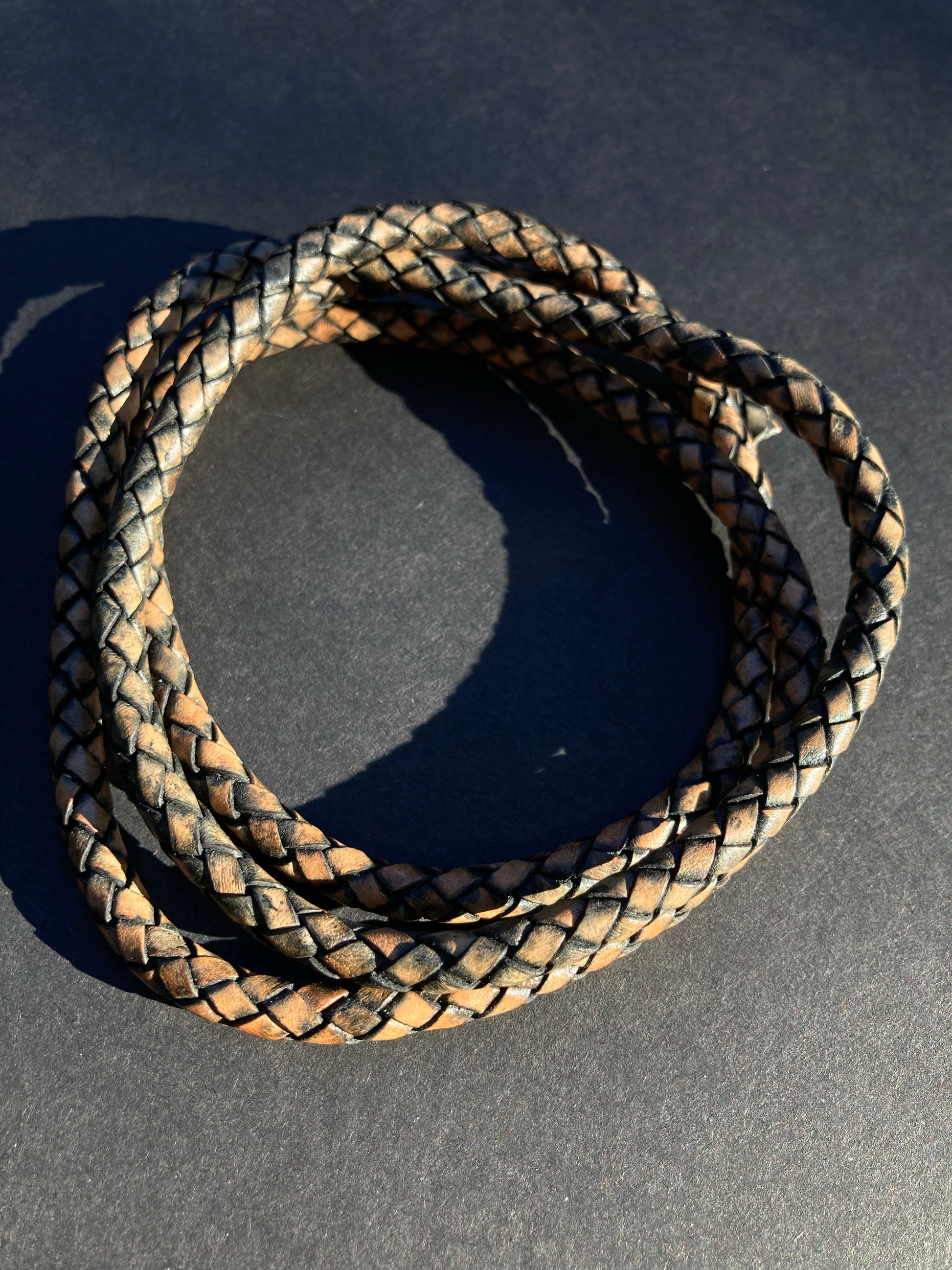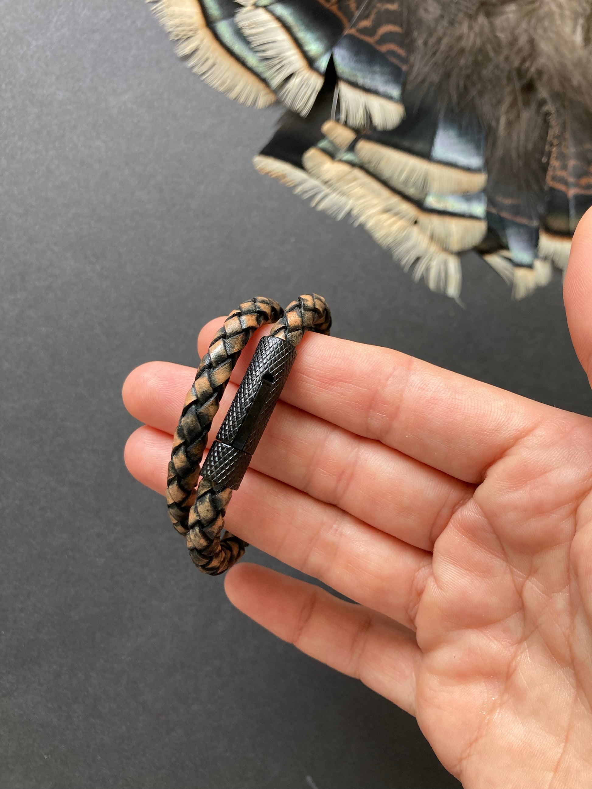 Beautiful + aromatic, hand tanned + woven oxhide leather accented with a North American whitetail antler piece finished with a 6mm matte black infinity clasp