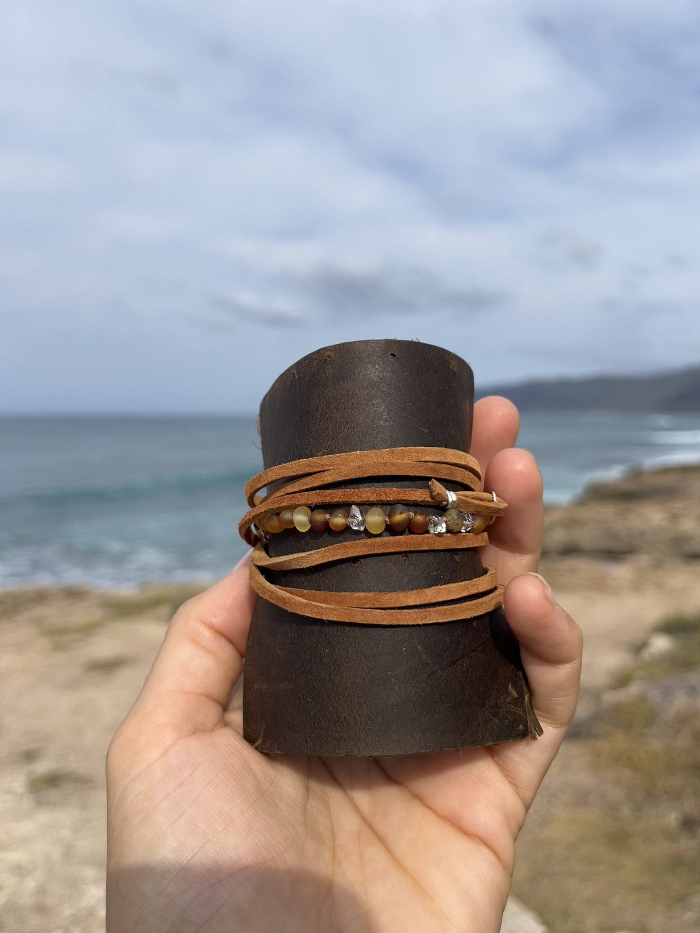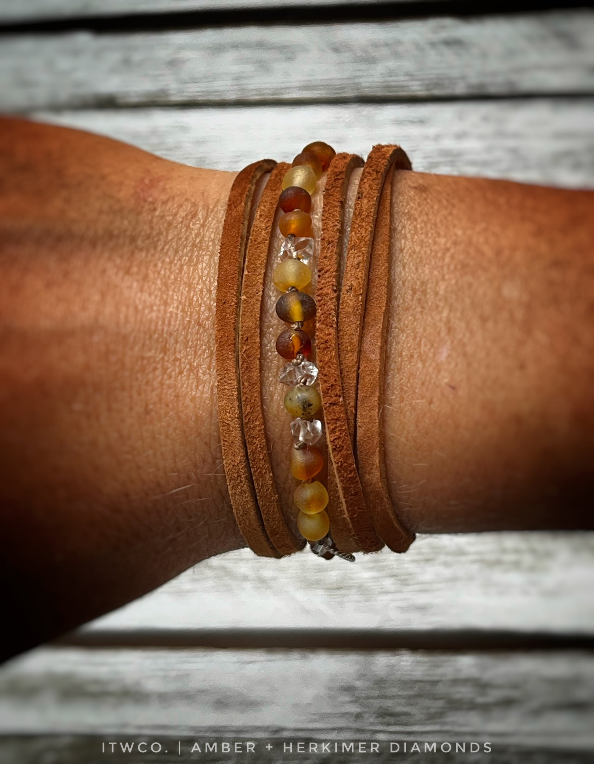 Amber + Herkimer Leather Wrap Bracelet MTO