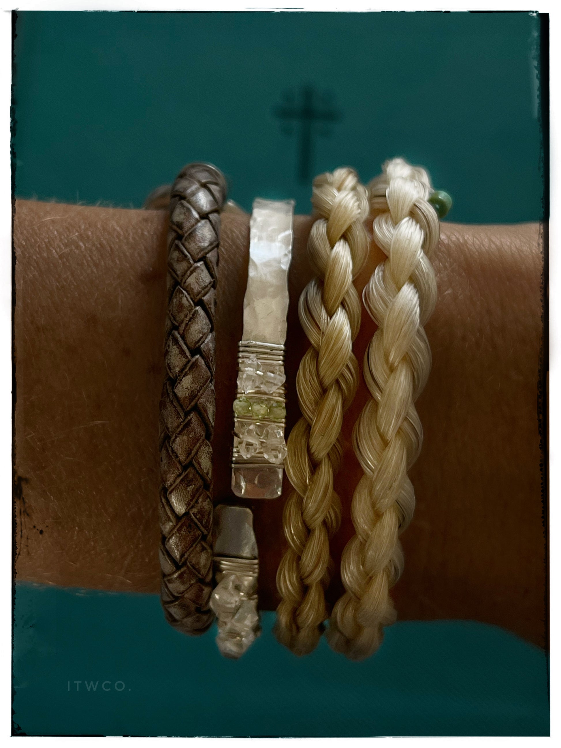 Hammered sterling 10ga cuff bracelet adorned with Herkimer diamonds x Peridots wrapped in sterling