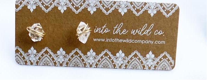 A gentle 20, 22ga twist of sterling or 14k gf around a raw Herkimer diamond.