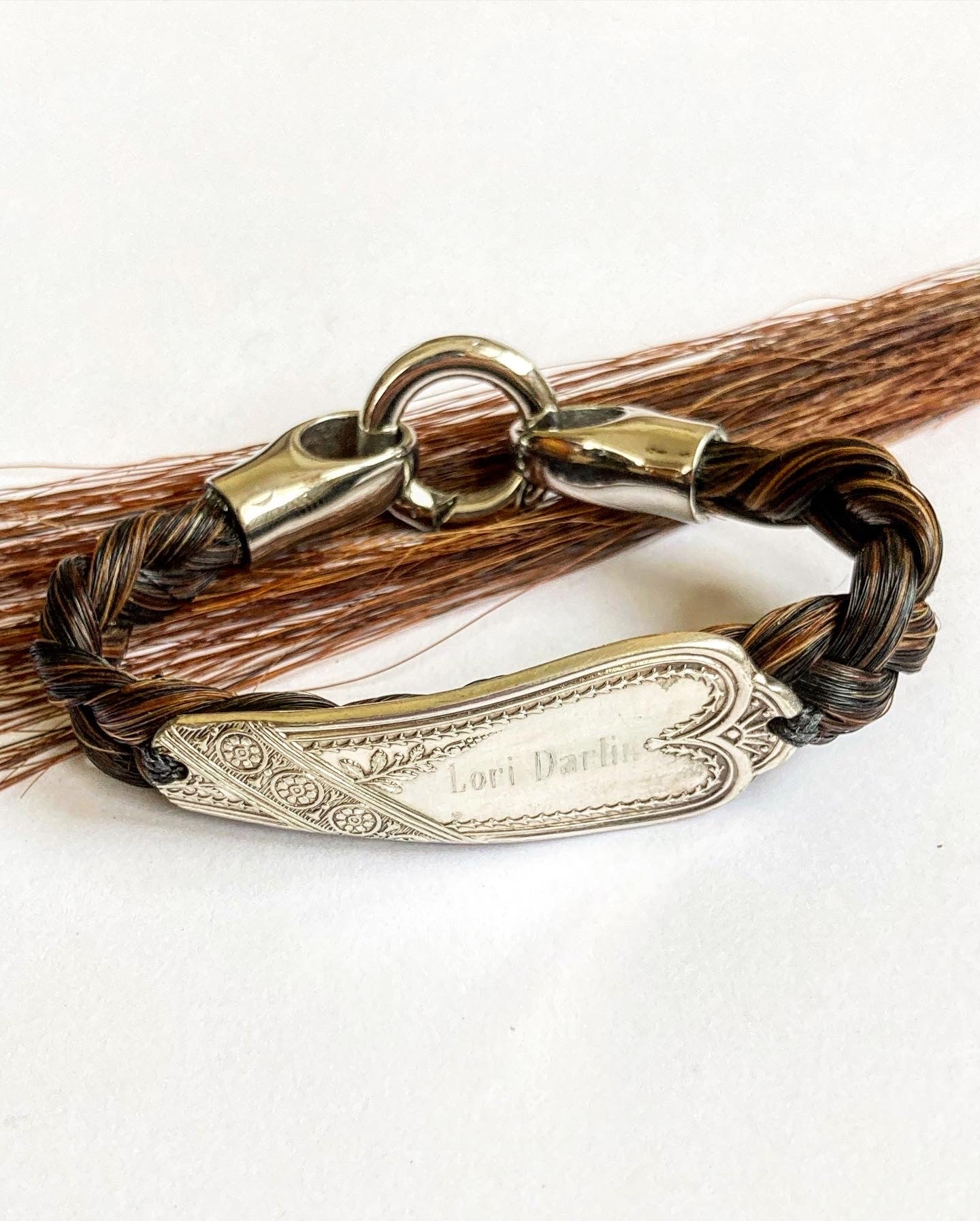 Custom Horsehair + Engraved Antique Sterling Spoon Bracelet