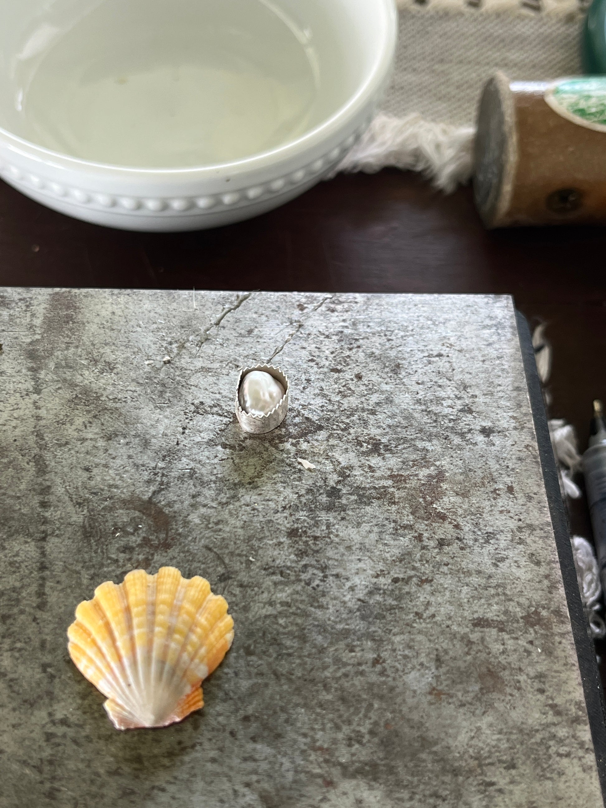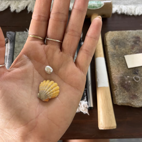 Kaua’i Sunrise Shell paired with a beautiful Silver Tahitian Keshi Pearl forged in .925 Sterling