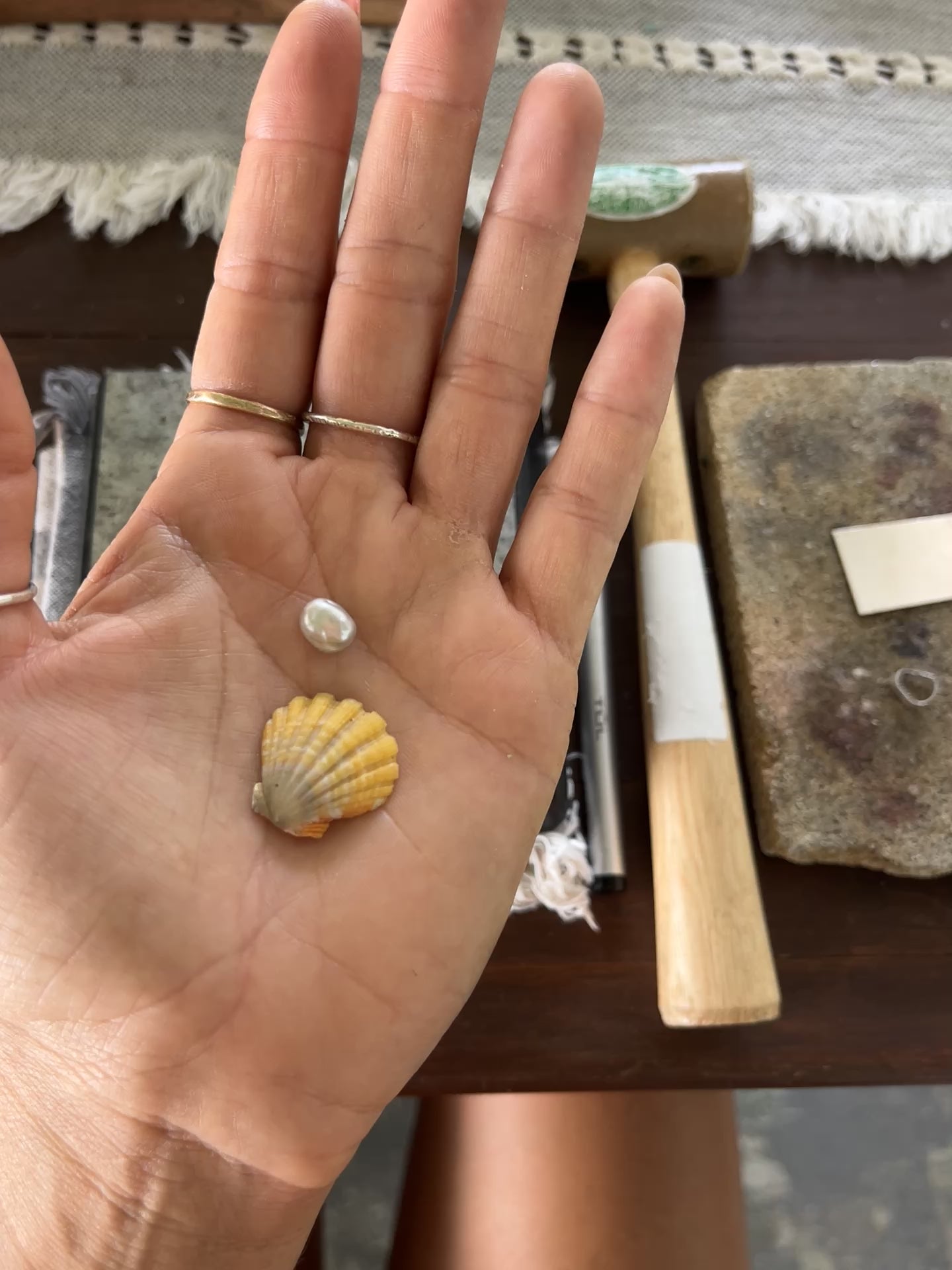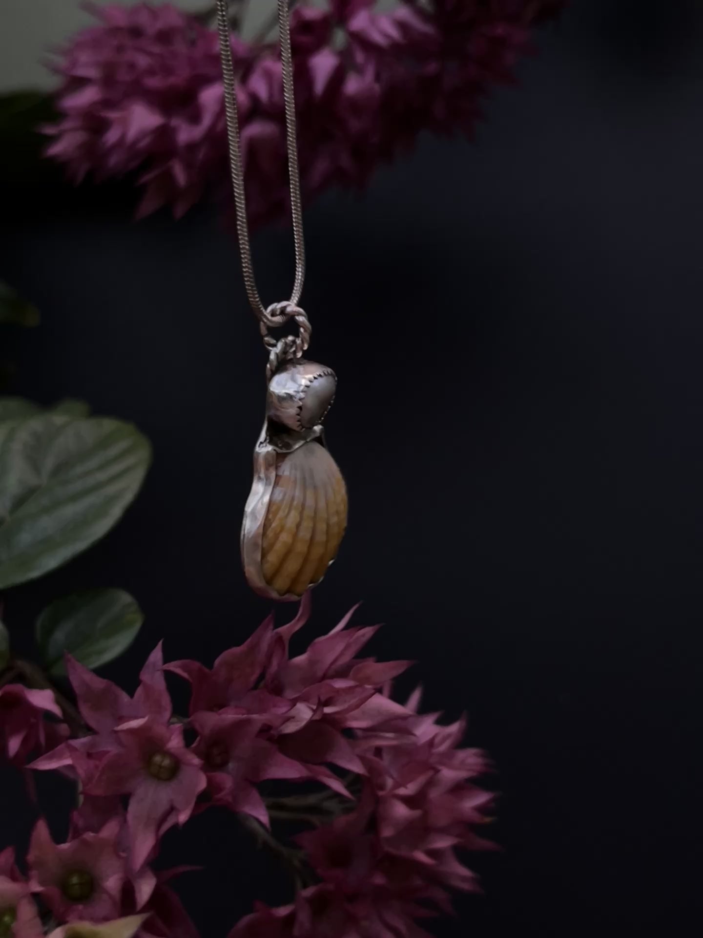 Kaua’i Sunrise Shell X Silver Tahitian Keshi Pearl Pendant