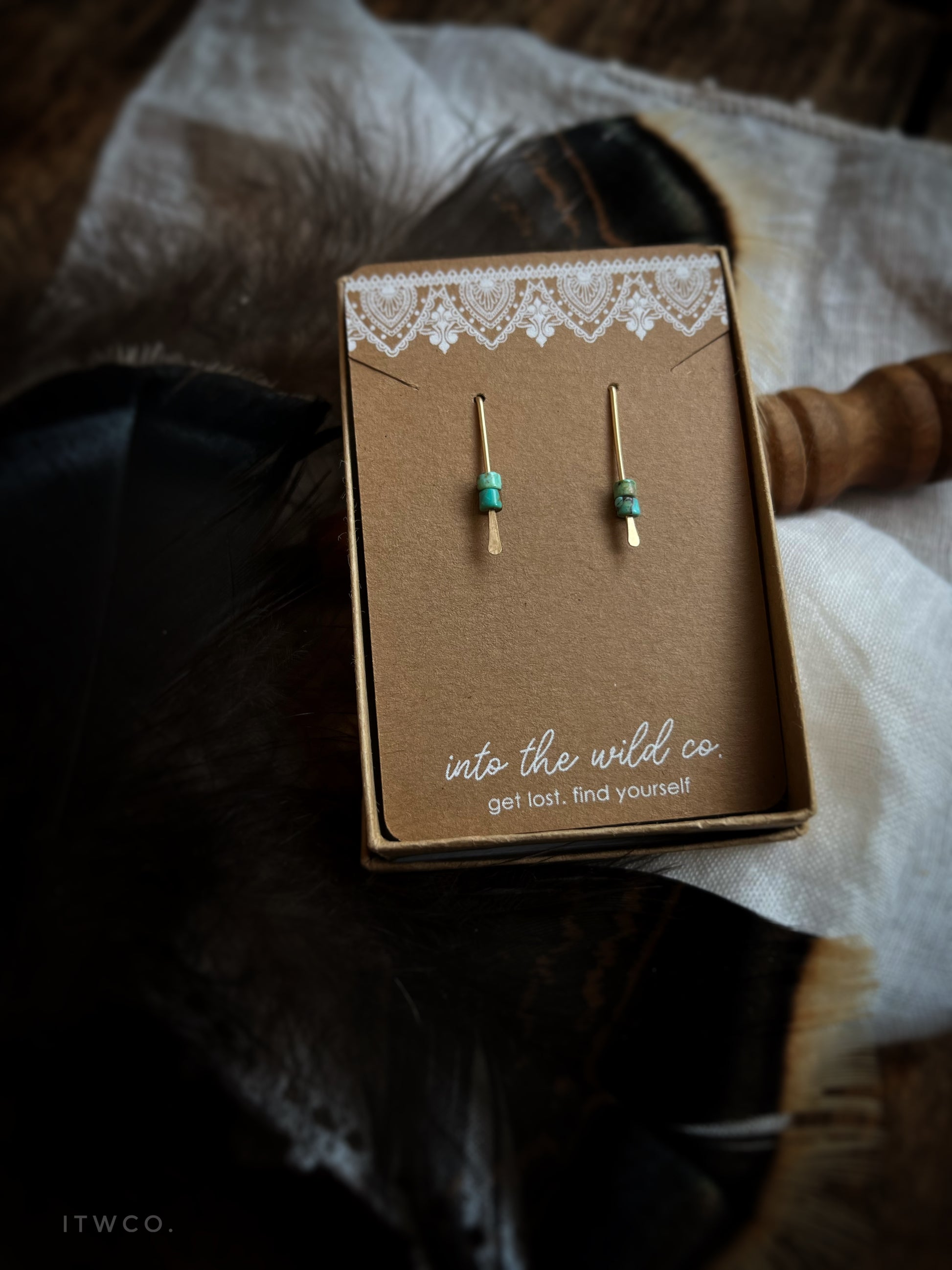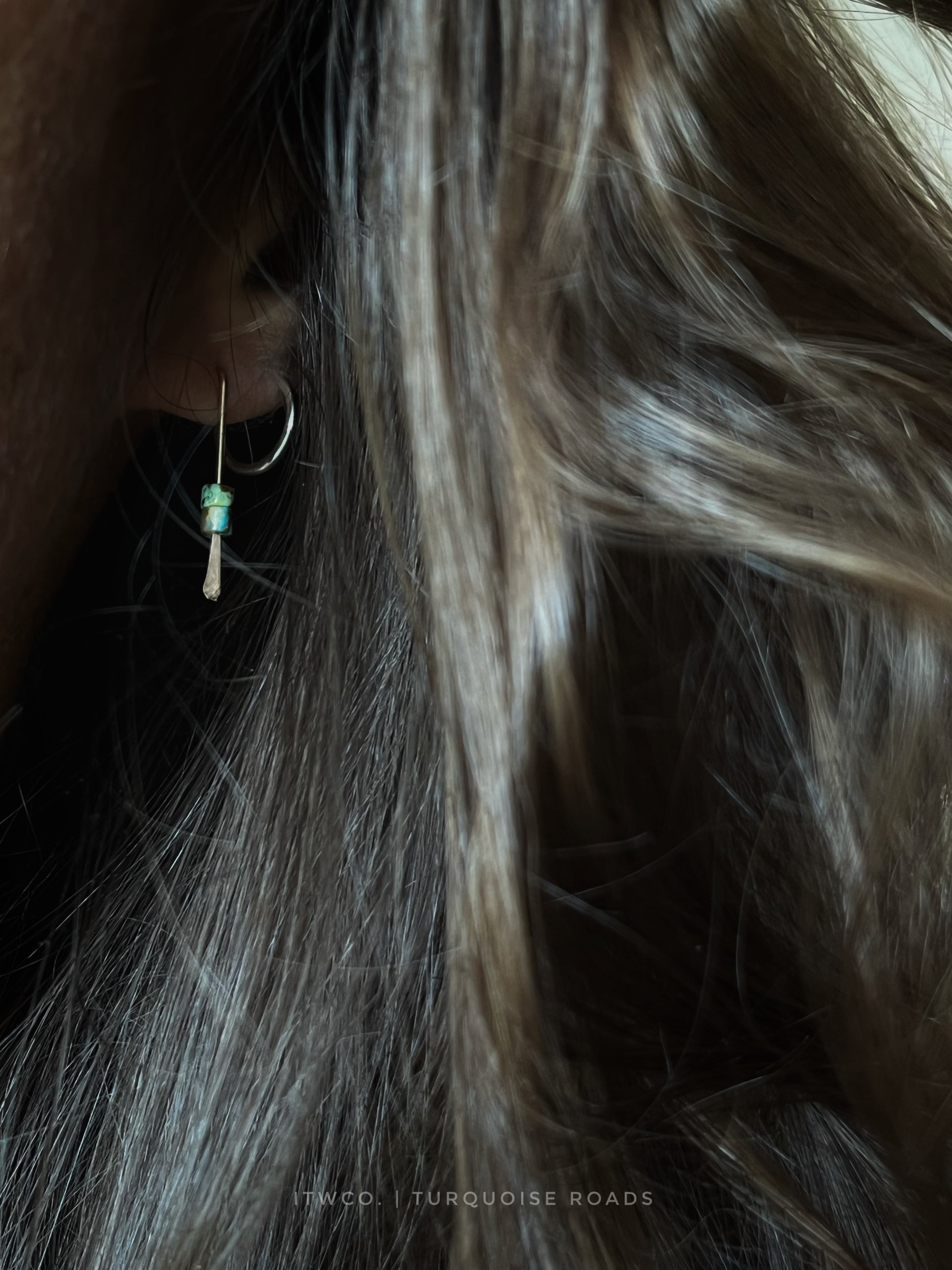 Natural turquoise accented hammered wire drop earrings