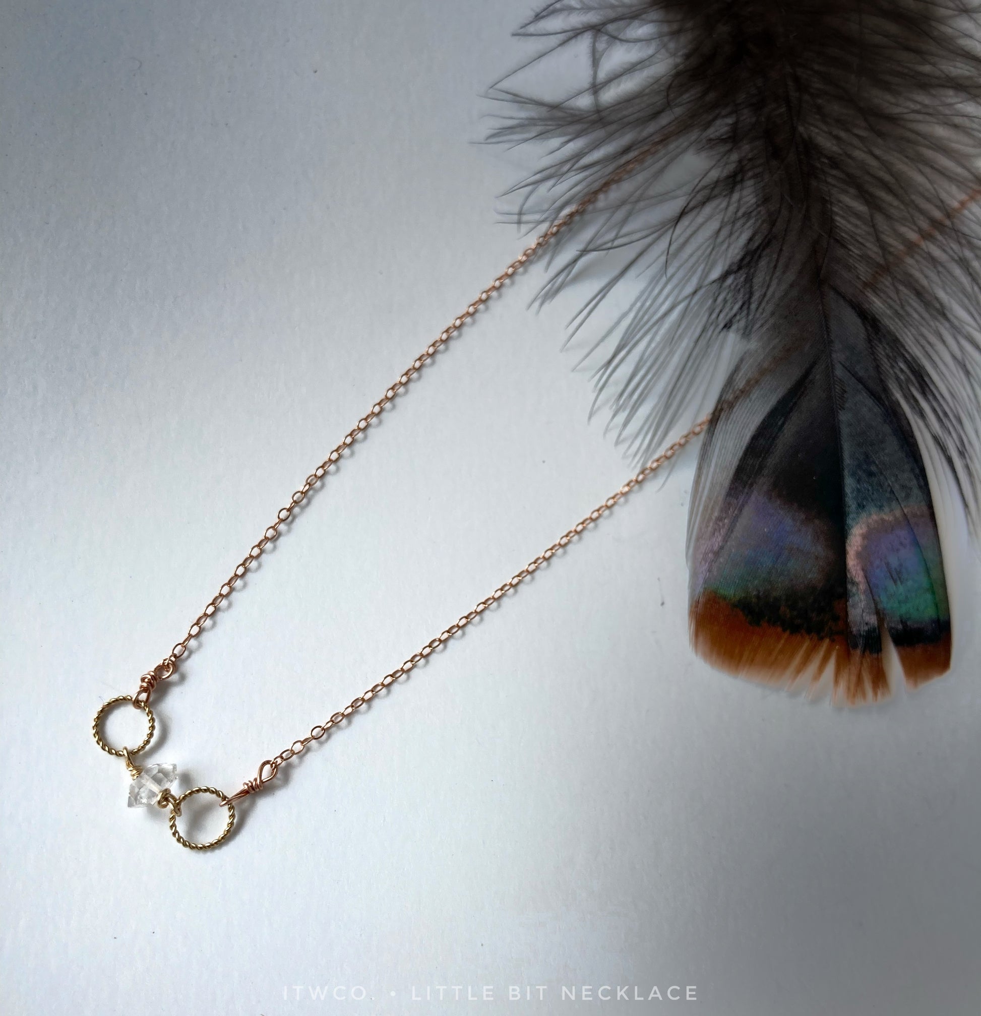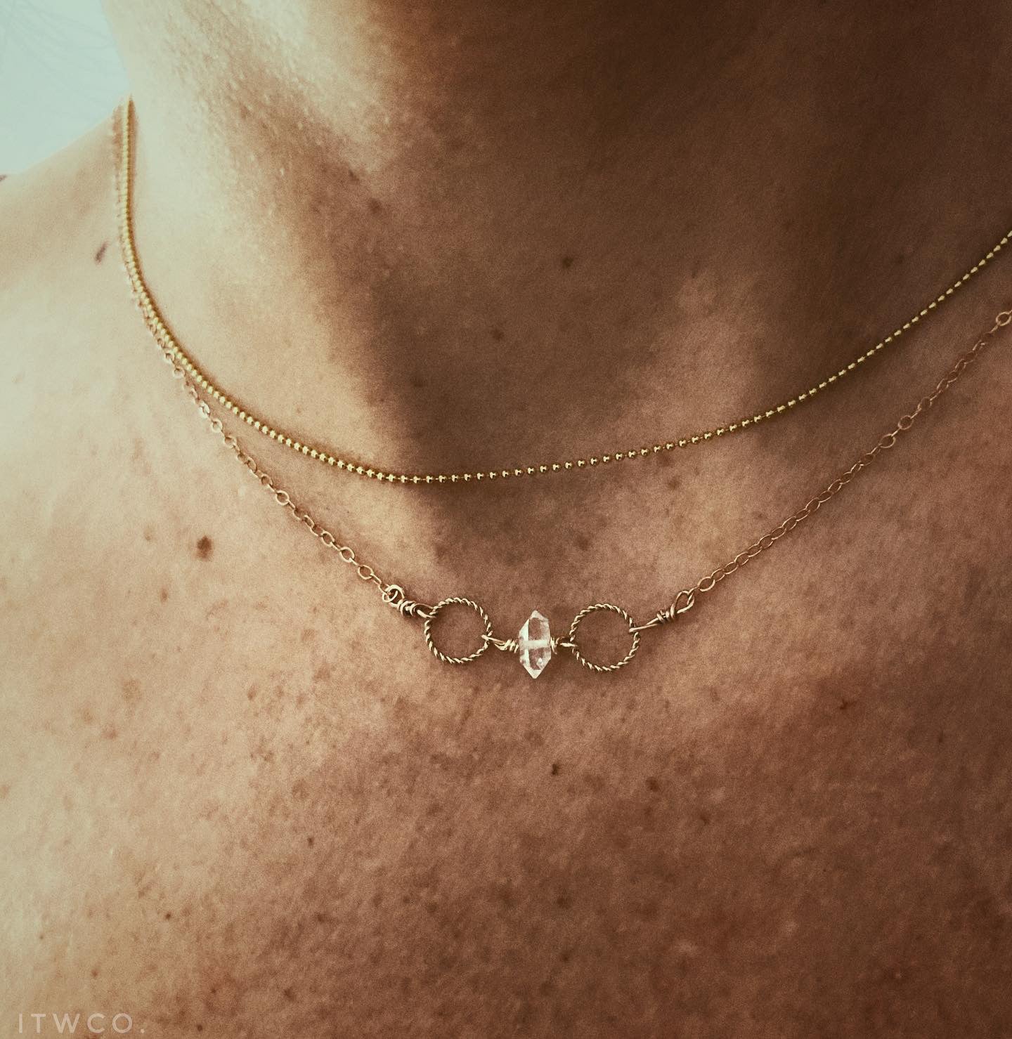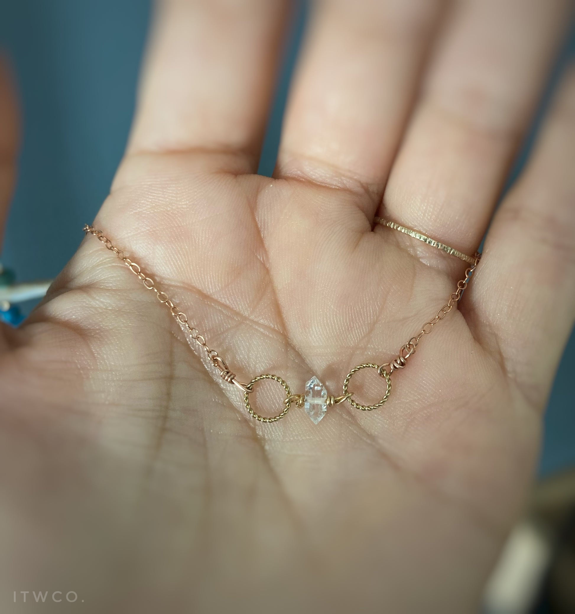 A beautiful herkimer diamond woven onto 14kt gold filled finished with my daintiest 14k gold filled chain