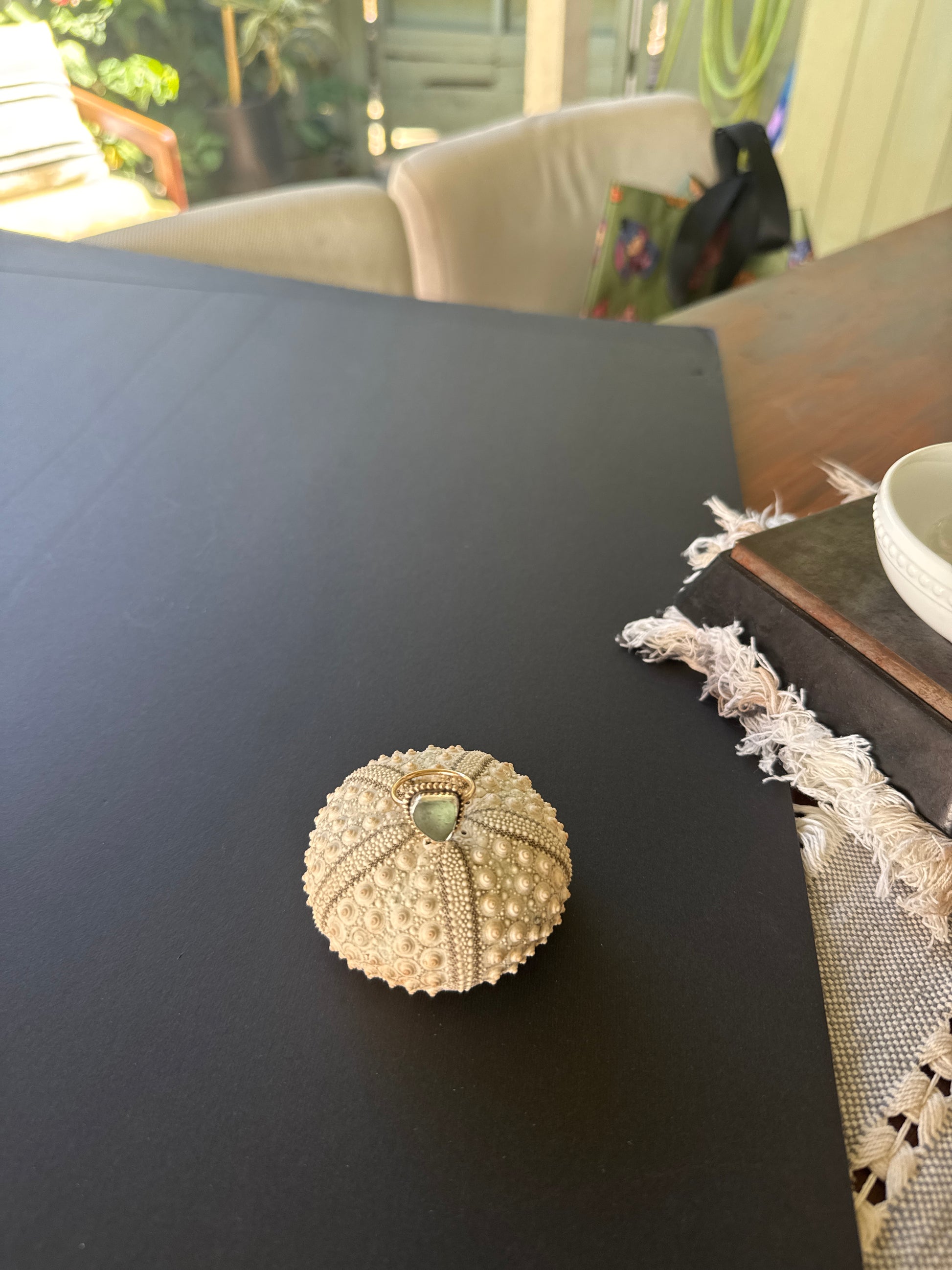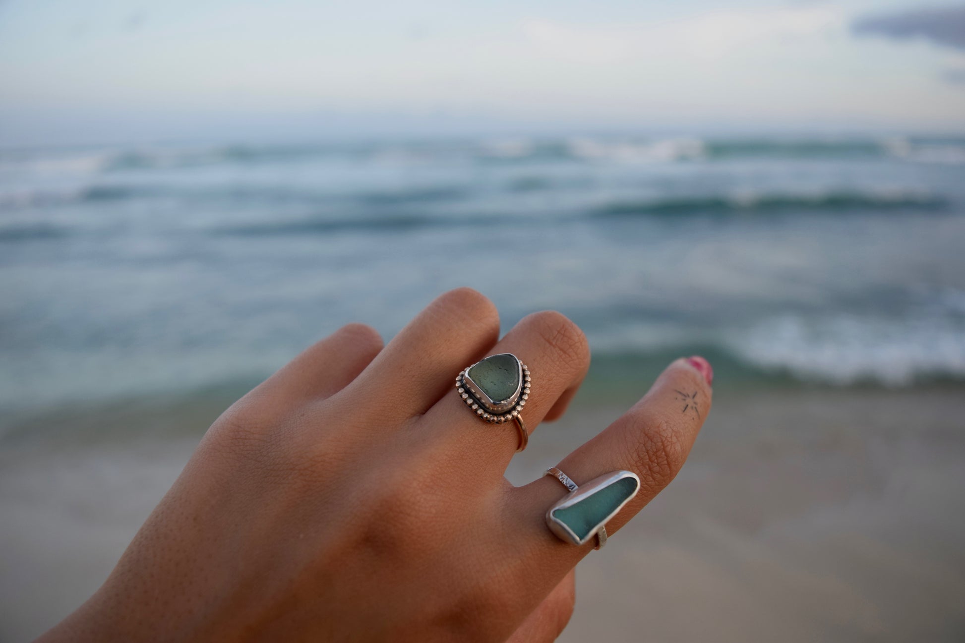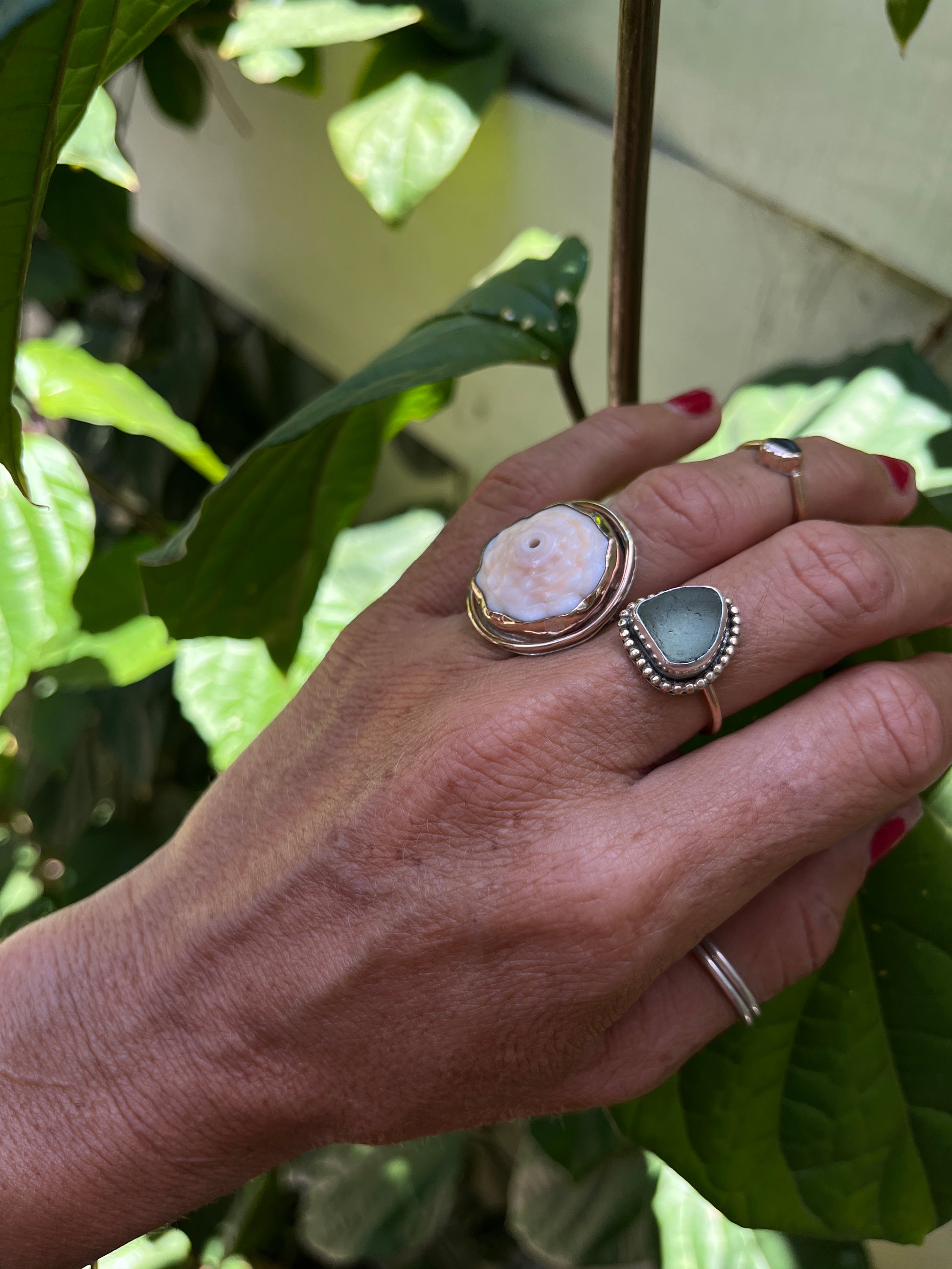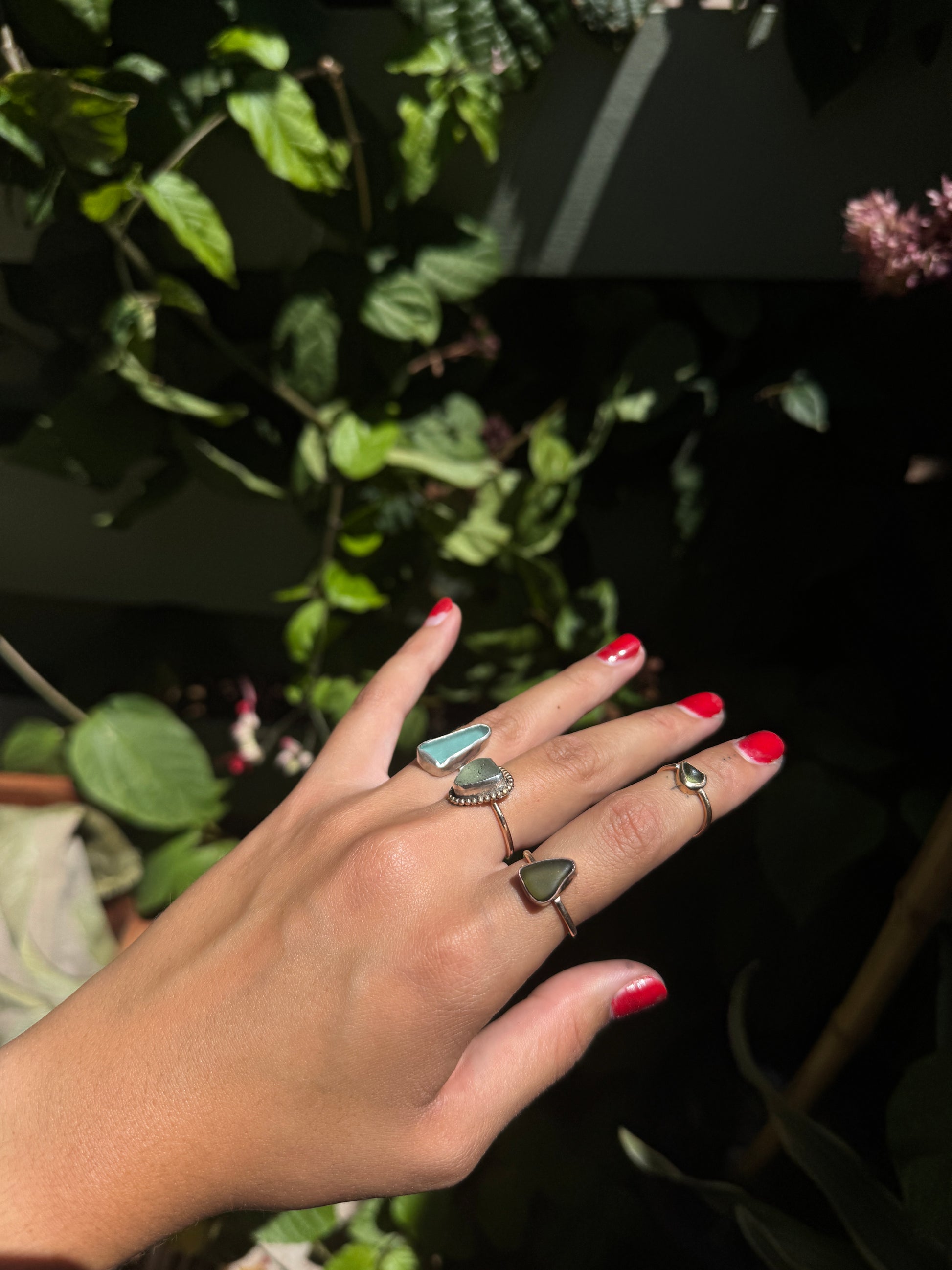 Beautiful blue rocks, Nova Scotia Canada seaglass picked in the 1990’s by me - encased in sterling and wrapped with 14k gf embellishments finished with a 14k gold filled ring band