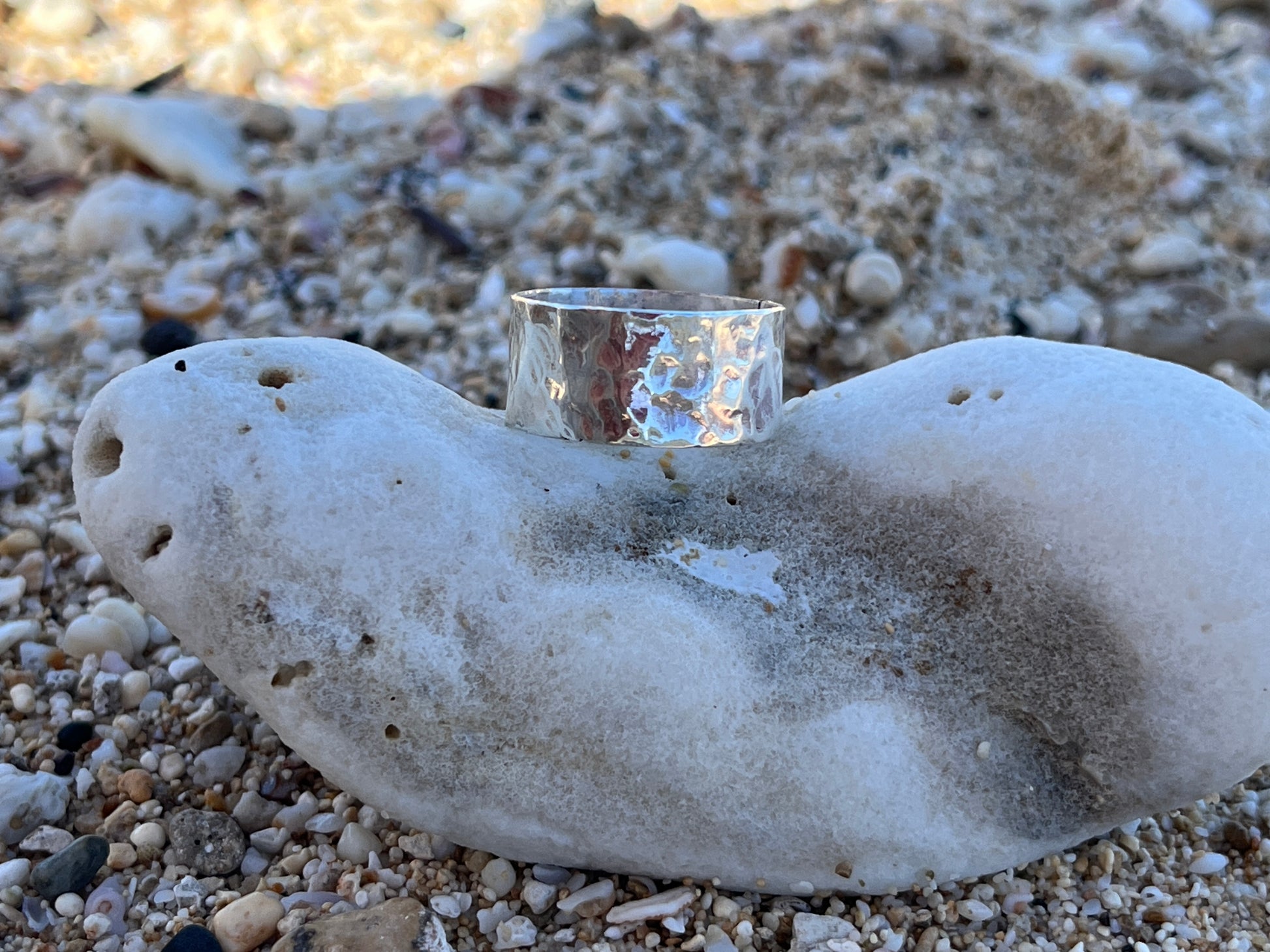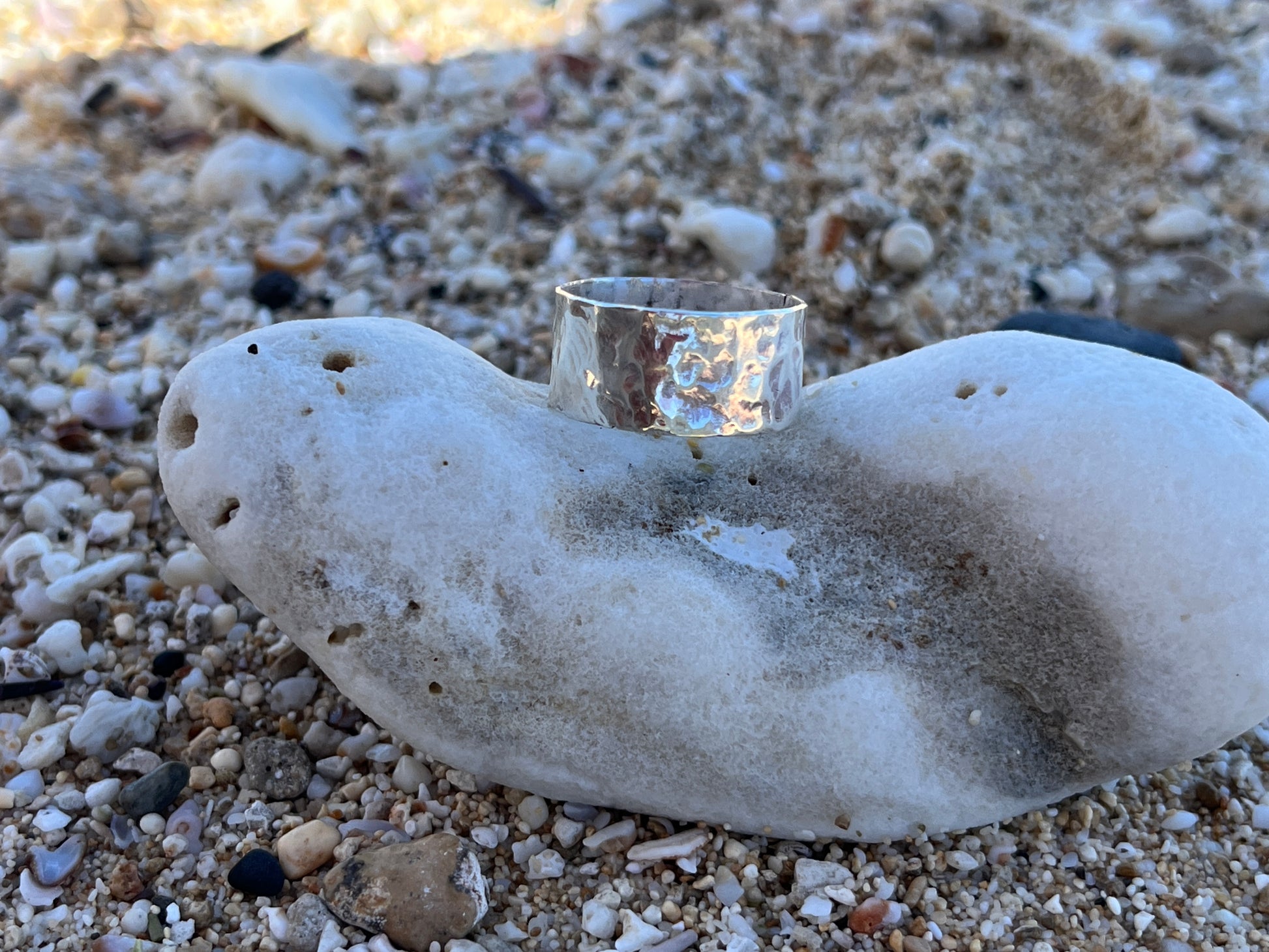The 3/8”, lightweight, .925 hammered sterling band is a substantial, yet feminine gesture.