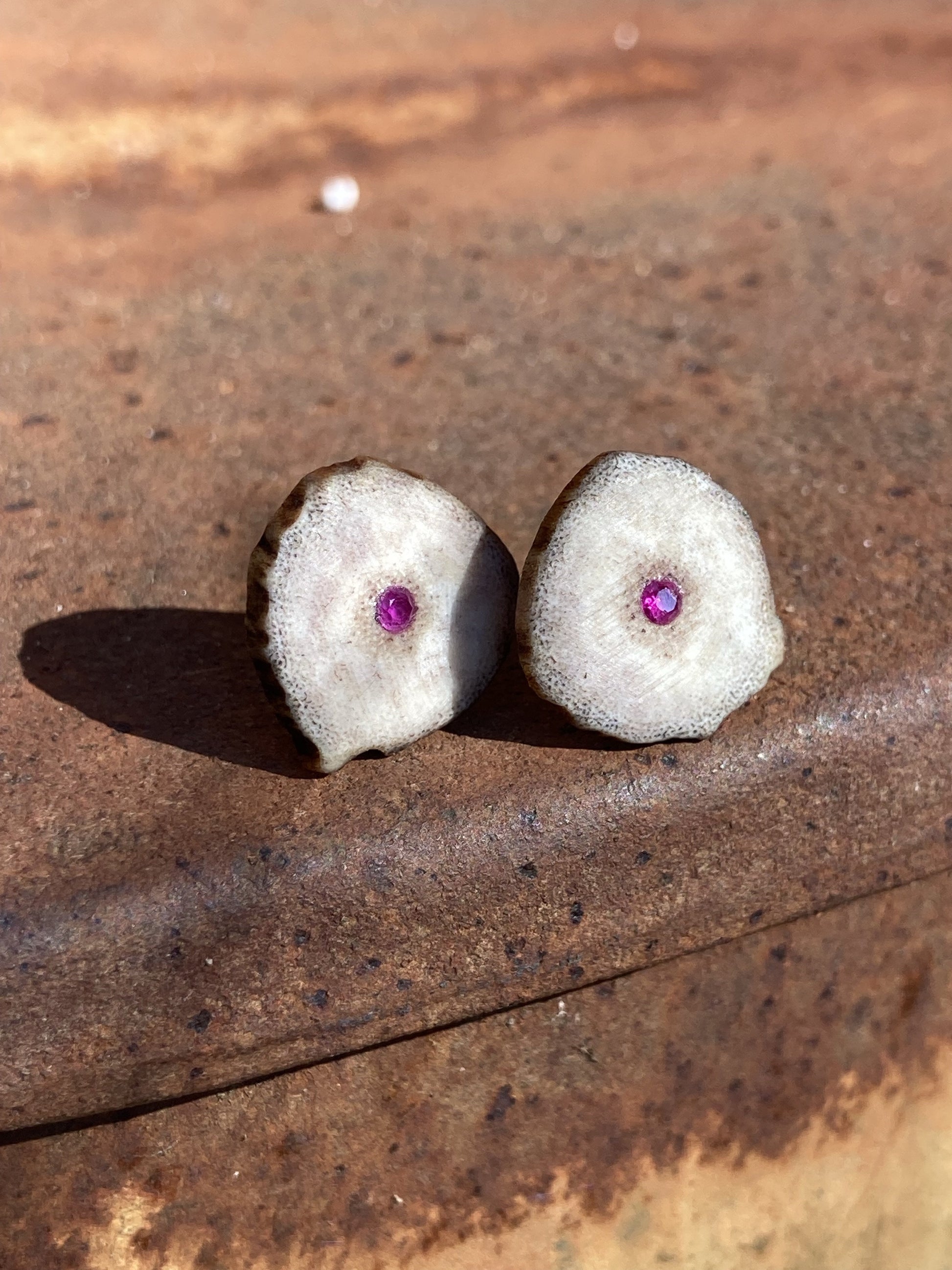 Signature Ruby Inlaid Antler Studs in 14k gf