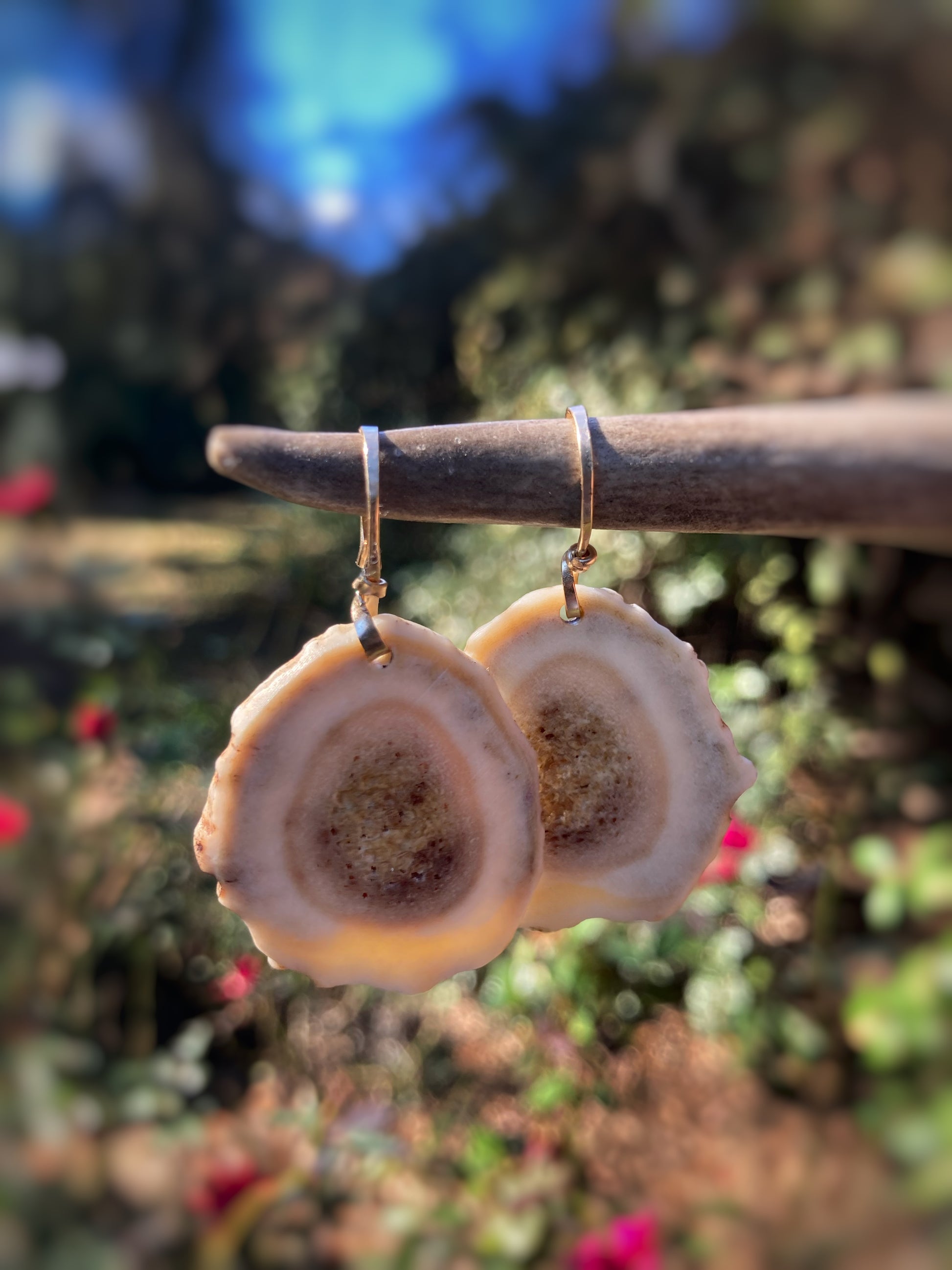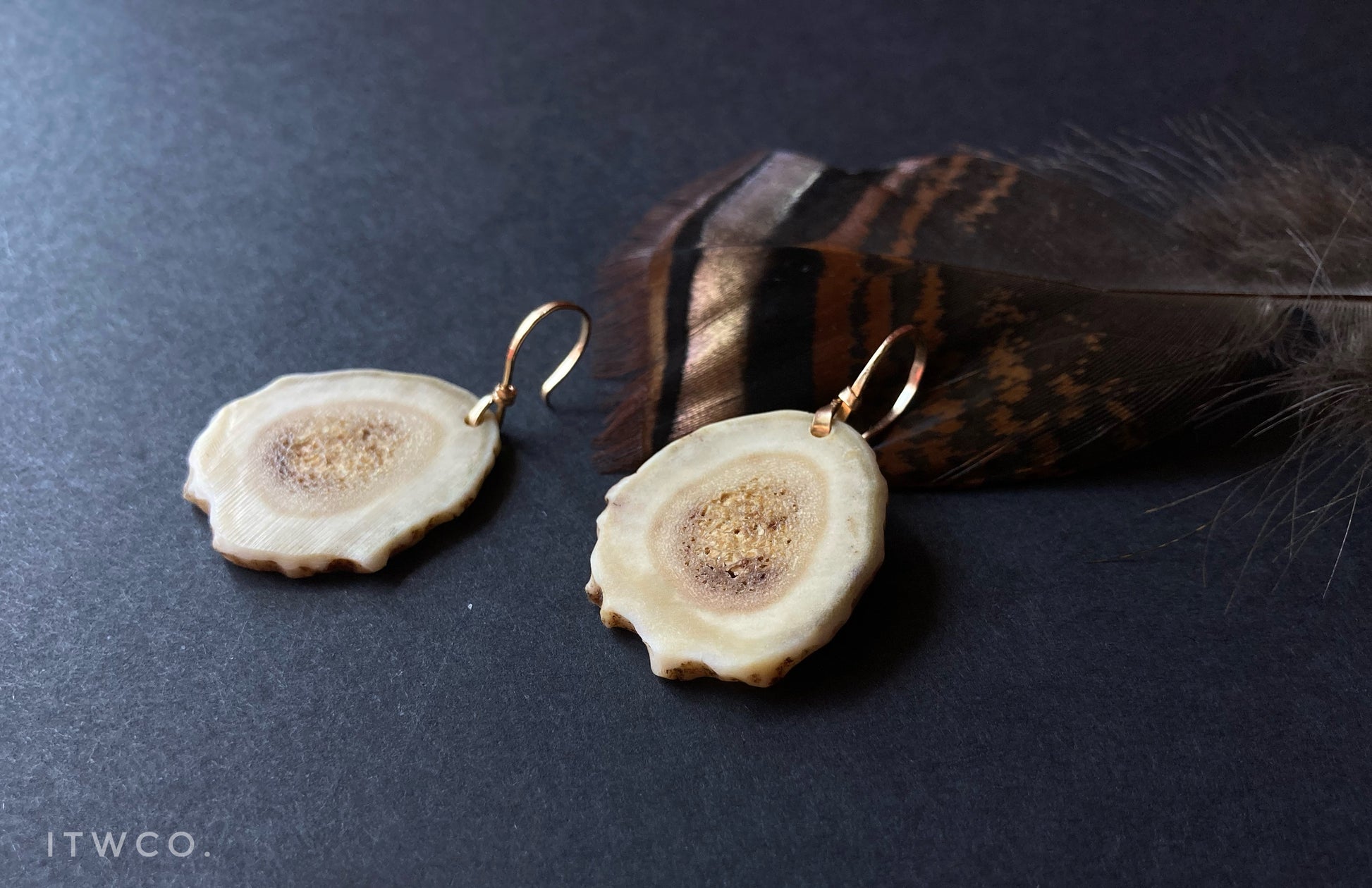 North American whitetail antler paired with hammered 14kt gold filled ear wire