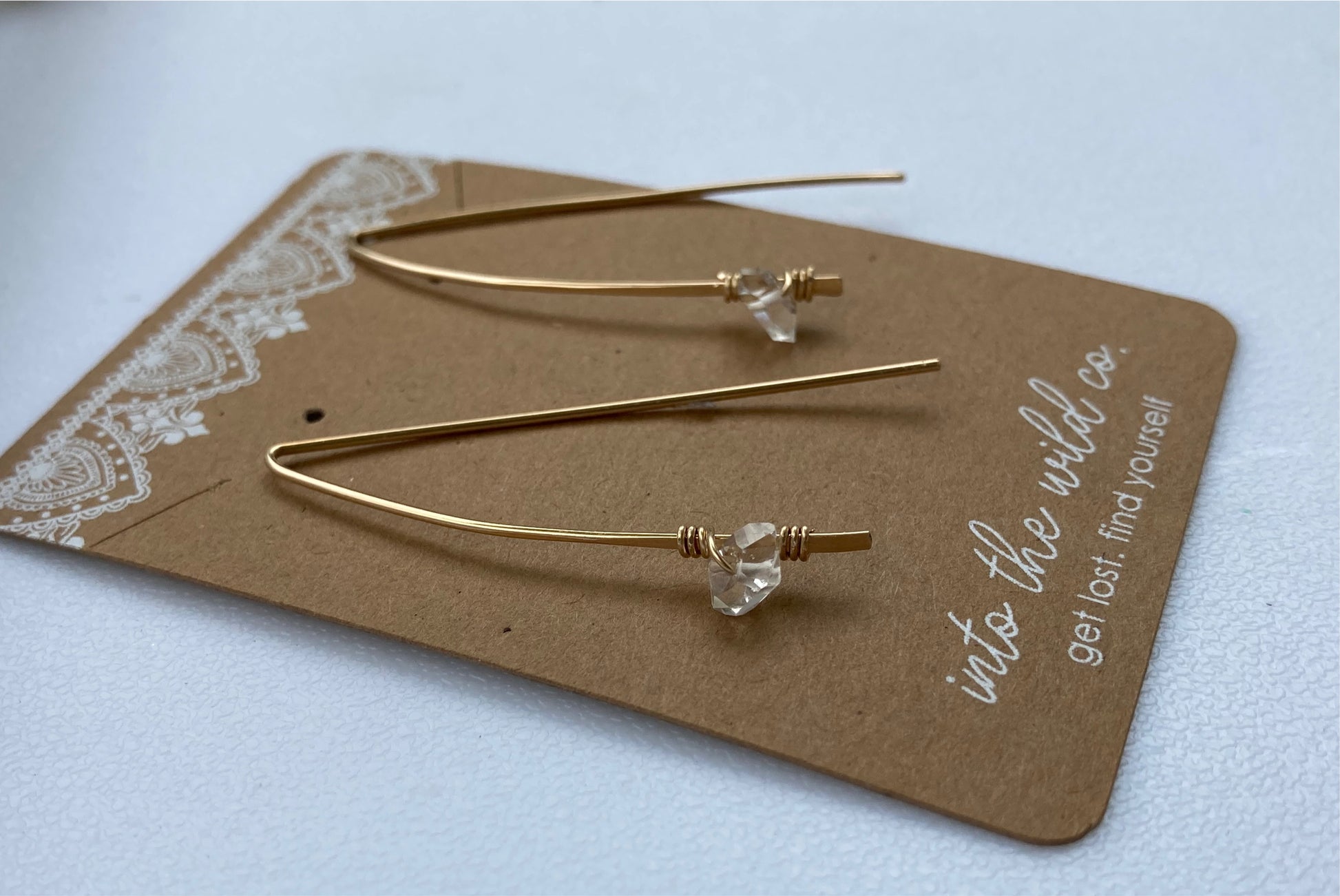 Herkimer Diamonds woven onto hammered 14kt gold filled wire & shaped into a wishbone