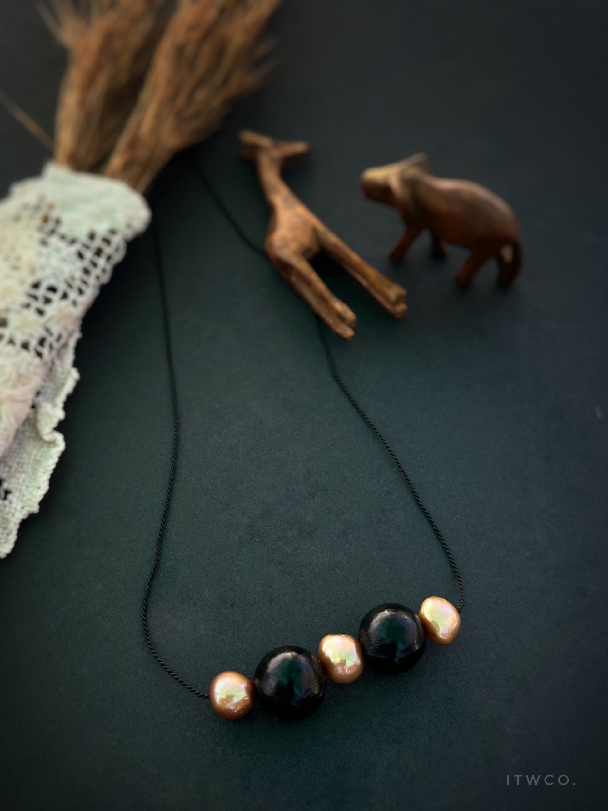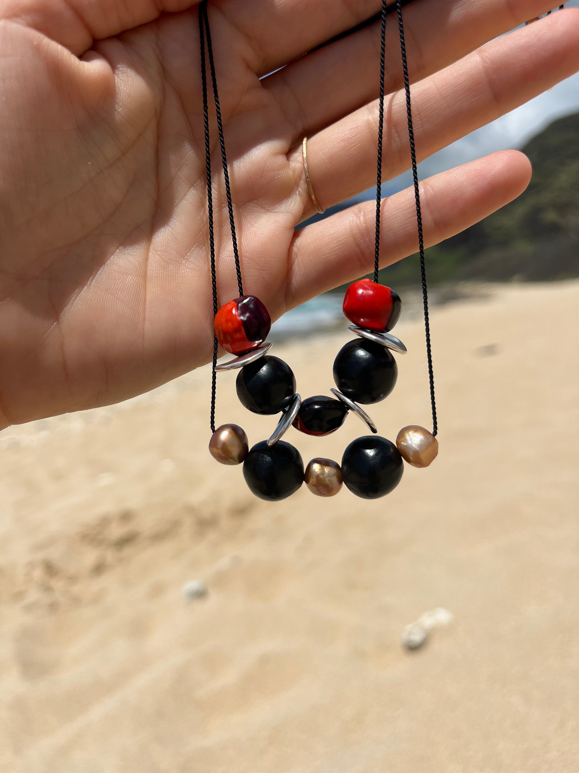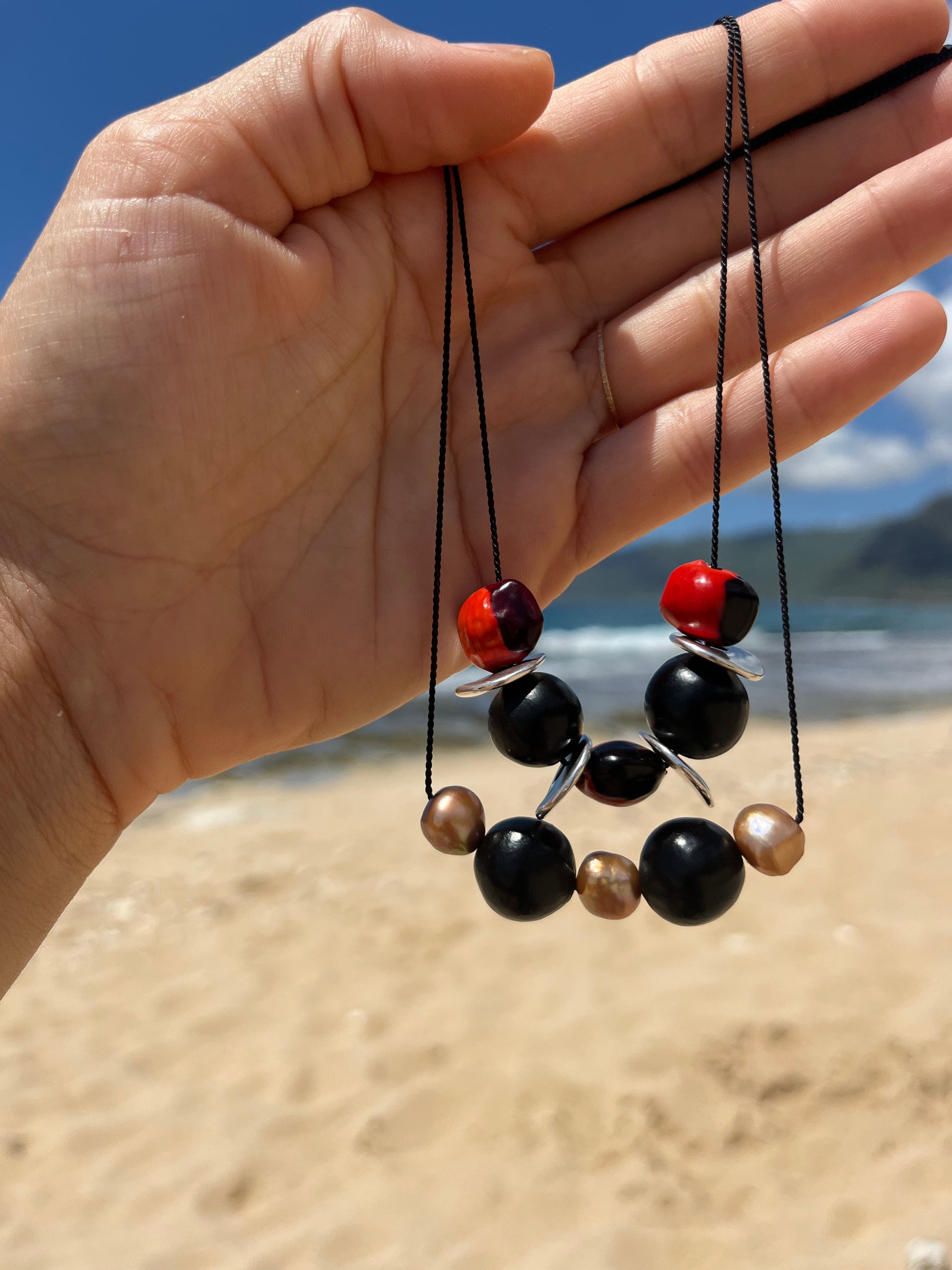 Pair this seed bead piece with nearly any outfit. Seed pods hand collected by my family in Ecuador paired with sterling & luscious, rusty natural pearls strung on silk cord