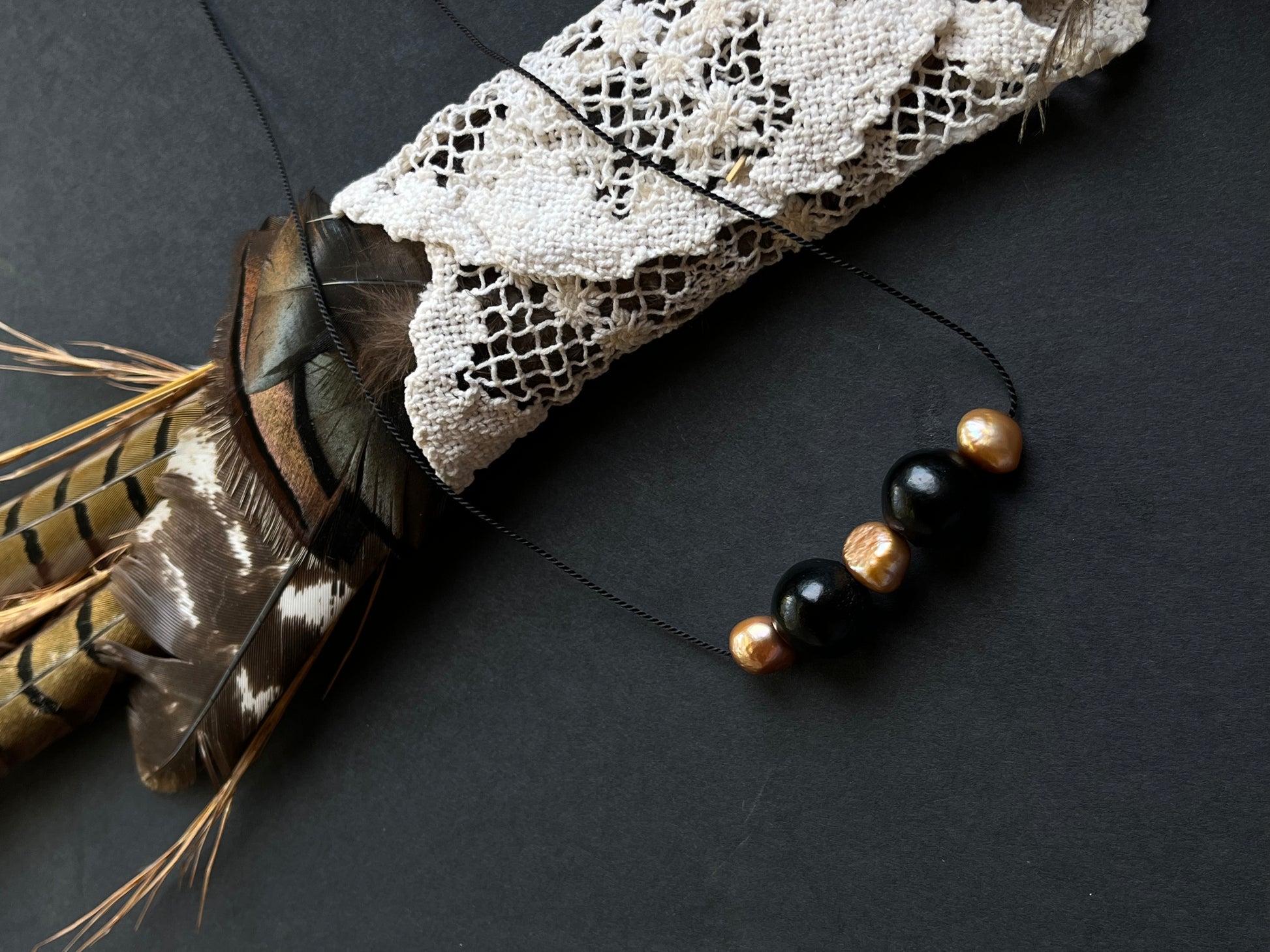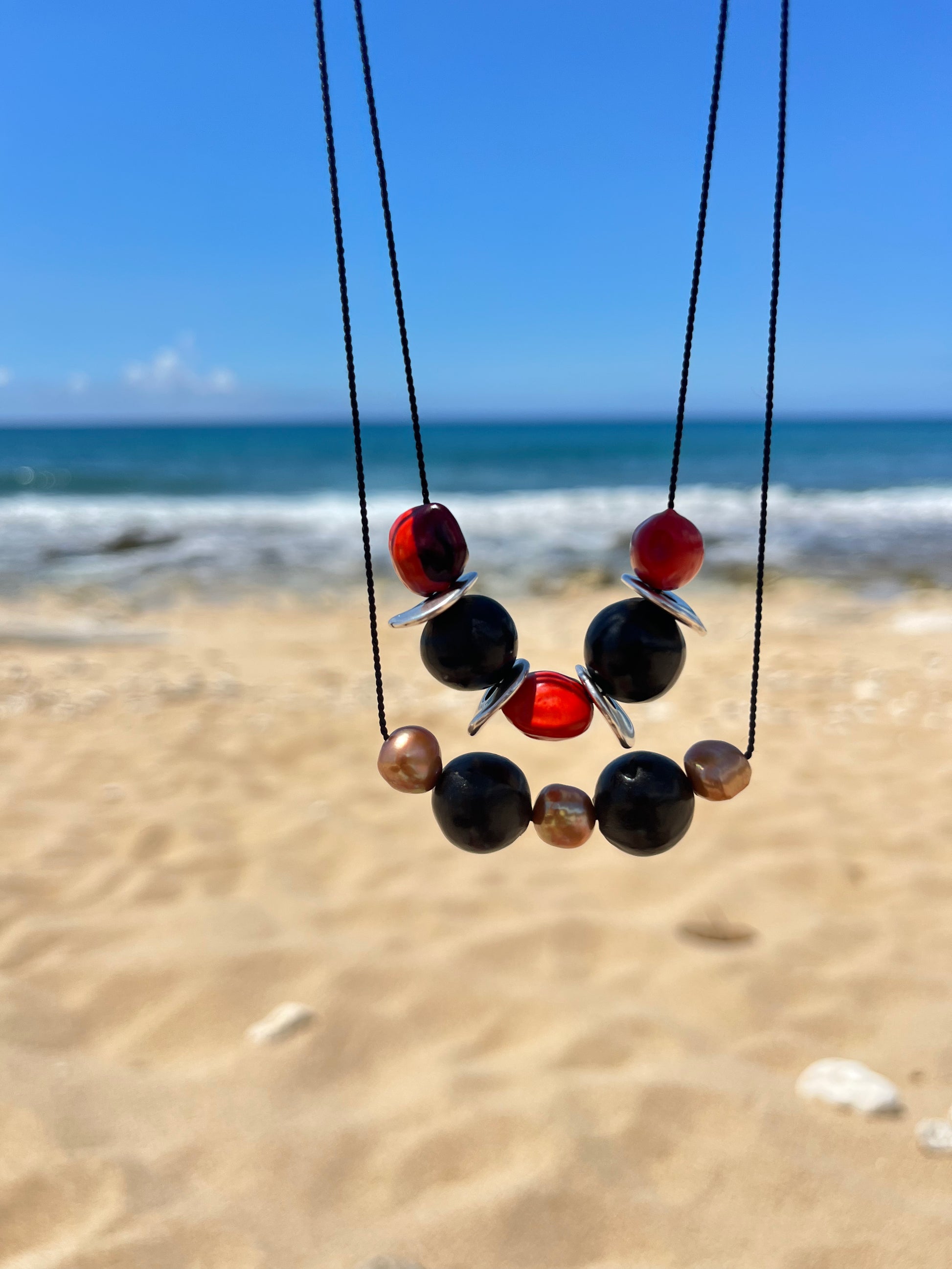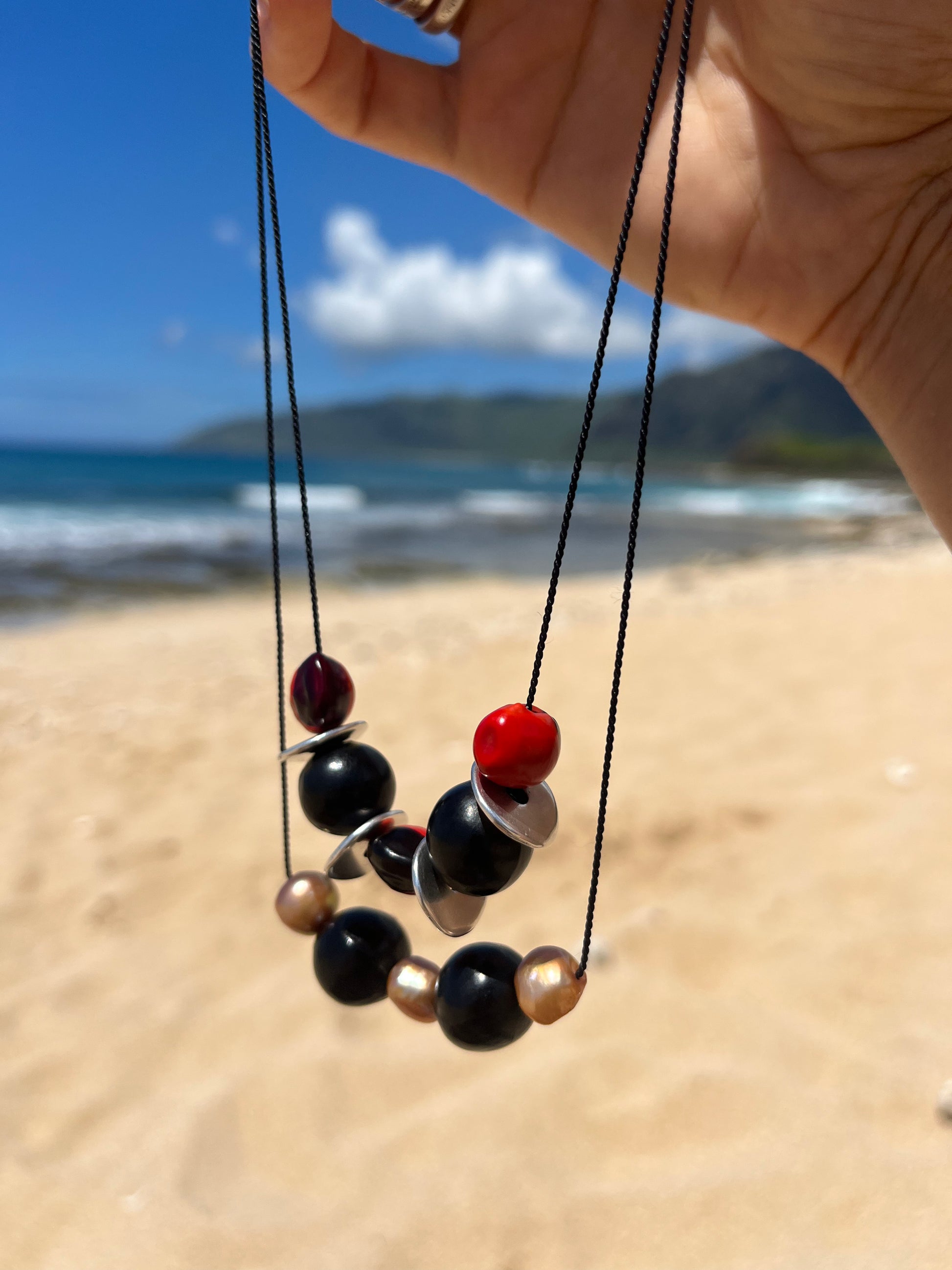 Pair this seed bead piece with nearly any outfit. Seed pods hand collected by my family in Ecuador paired with sterling & luscious, rusty natural pearls strung on silk cord