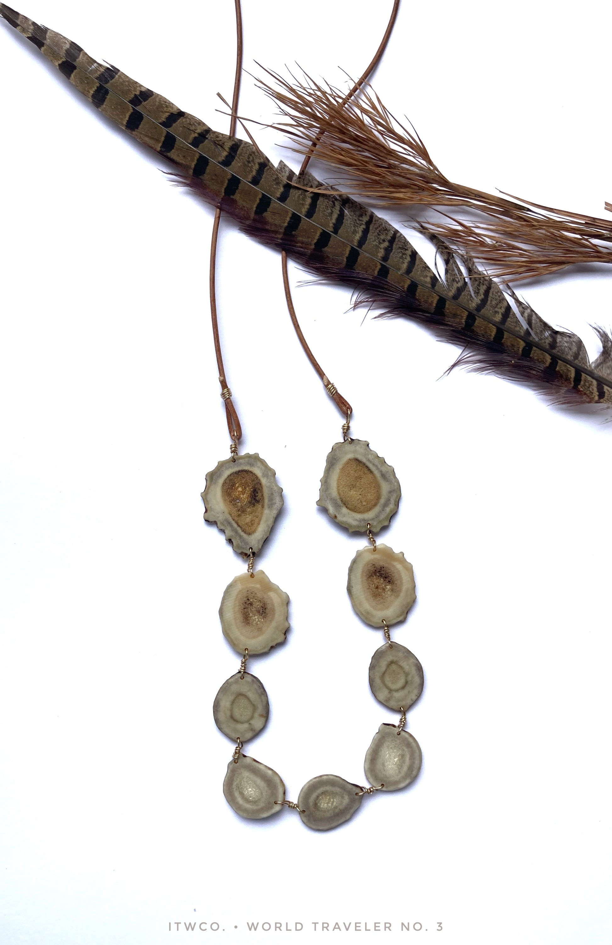 North American Whitetail Antler + 14kt Gold Filled + European Taupe Leather